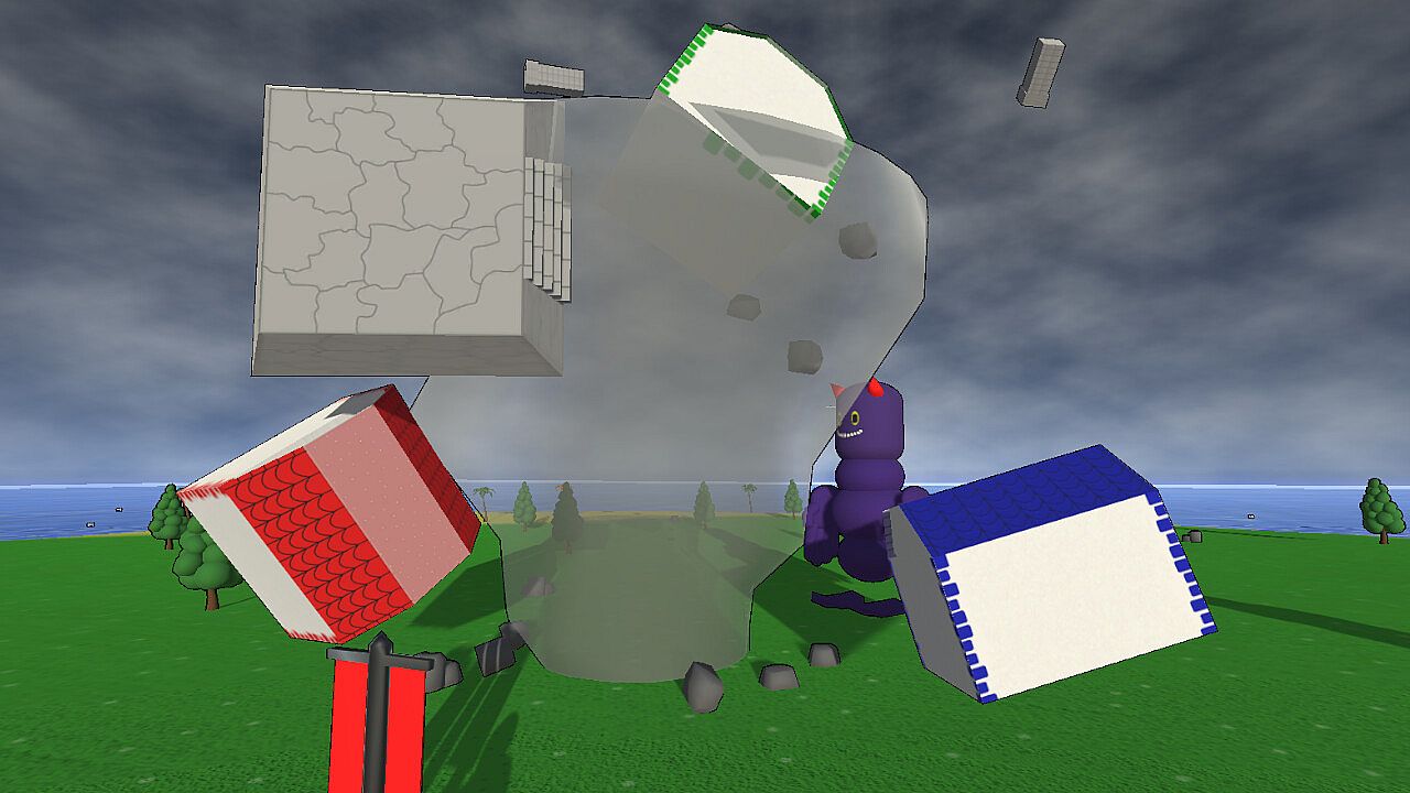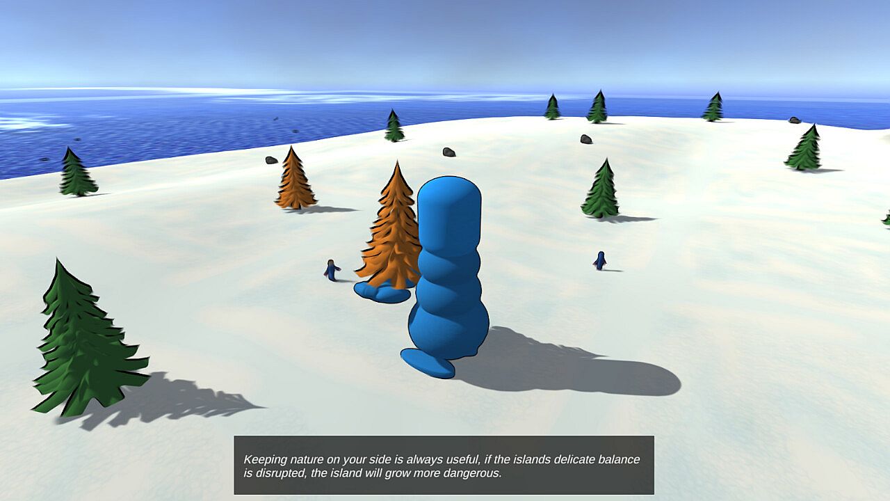 The Giant of Torridge Island is a sandbox game in which you can either help or hinder the life on an island. The Giant has the abilty to pick up almost anything and can make the objects interact in a variety of ways by placing them next to each other. These interactions will affect life and nature on the island in both positive and negative ways.