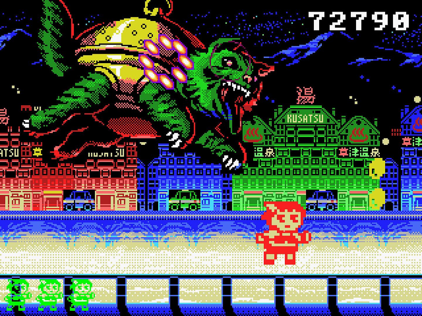 It's a pseudo-retro 2D side-scrolling shooter with a variety of gameplay in 8 stages, with visuals (TMS9918A spec V9938 palette) and sound (PSG+SCC) enhanced to mimic the MSX standard popular in Japan in the 1980s. Formerly released for smartphones in 2014 and then passed through Steam Greenlight, the release was delayed for about 10 years due to the production company's busy schedule (Final Re:Quest The Movie). The overall volume of the game has been increased to compensate for this. The controls are very simple and familiar. The player controls a cute little girl with dots, and defeats various enemies with a series of automatic shots. The game is inspired by good old Japanese culture, Gunma's nature and customs, in the 80's style, and the ending may change some by discovering various hidden items in the stage. We aimed to create a simple and kitschy shooting game before the bullet-hell shooters. We hope you will enjoy this game if you are tired of complicated modern games.