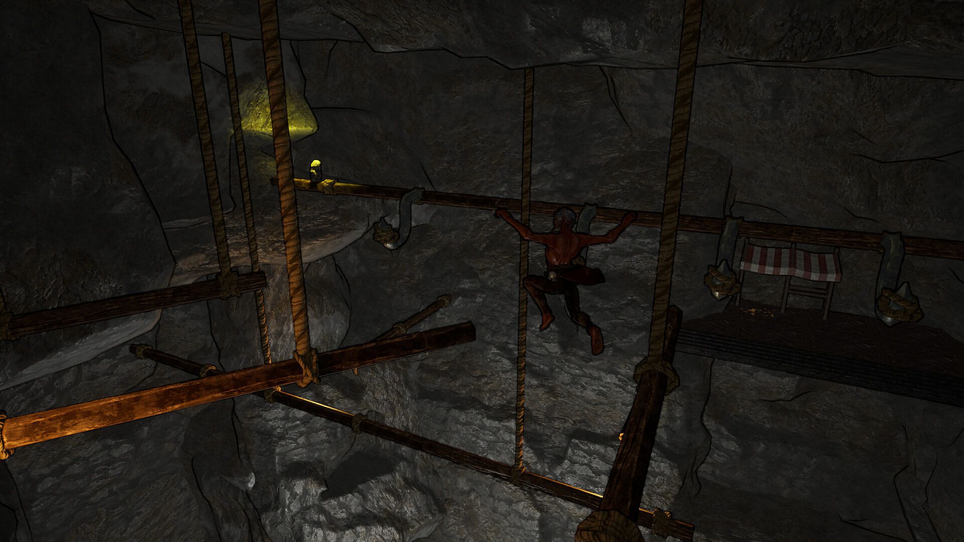 Climb through a single-shot, hand-sculpted nightmare full of precarious ledges, rickety goblin bridges, and physics-defying rocks. No loading zones. Just one continuous climb. One slip and it's a long way down.