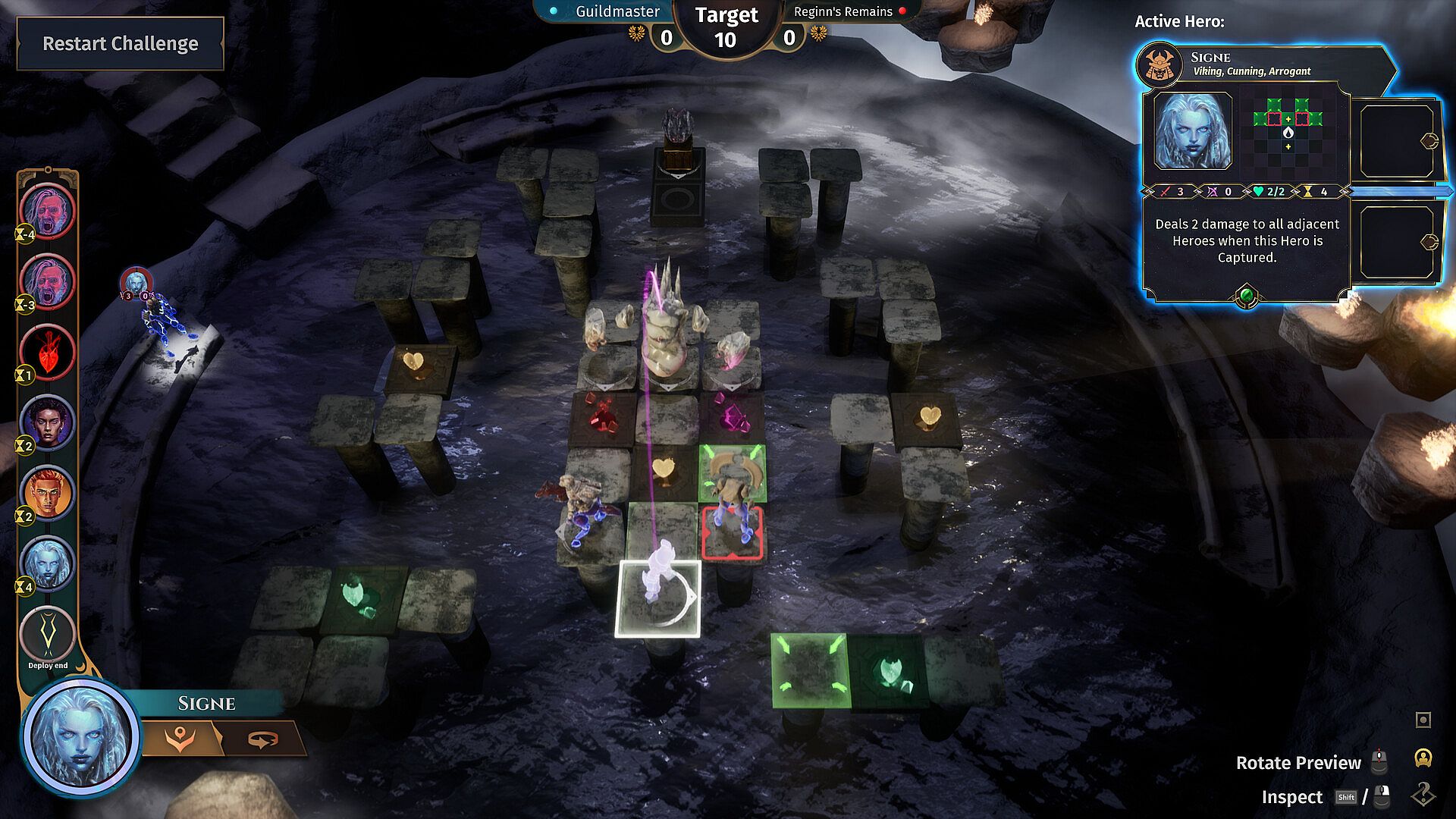 - Manage your resources, your team’s Impetus & your Standing with each god;