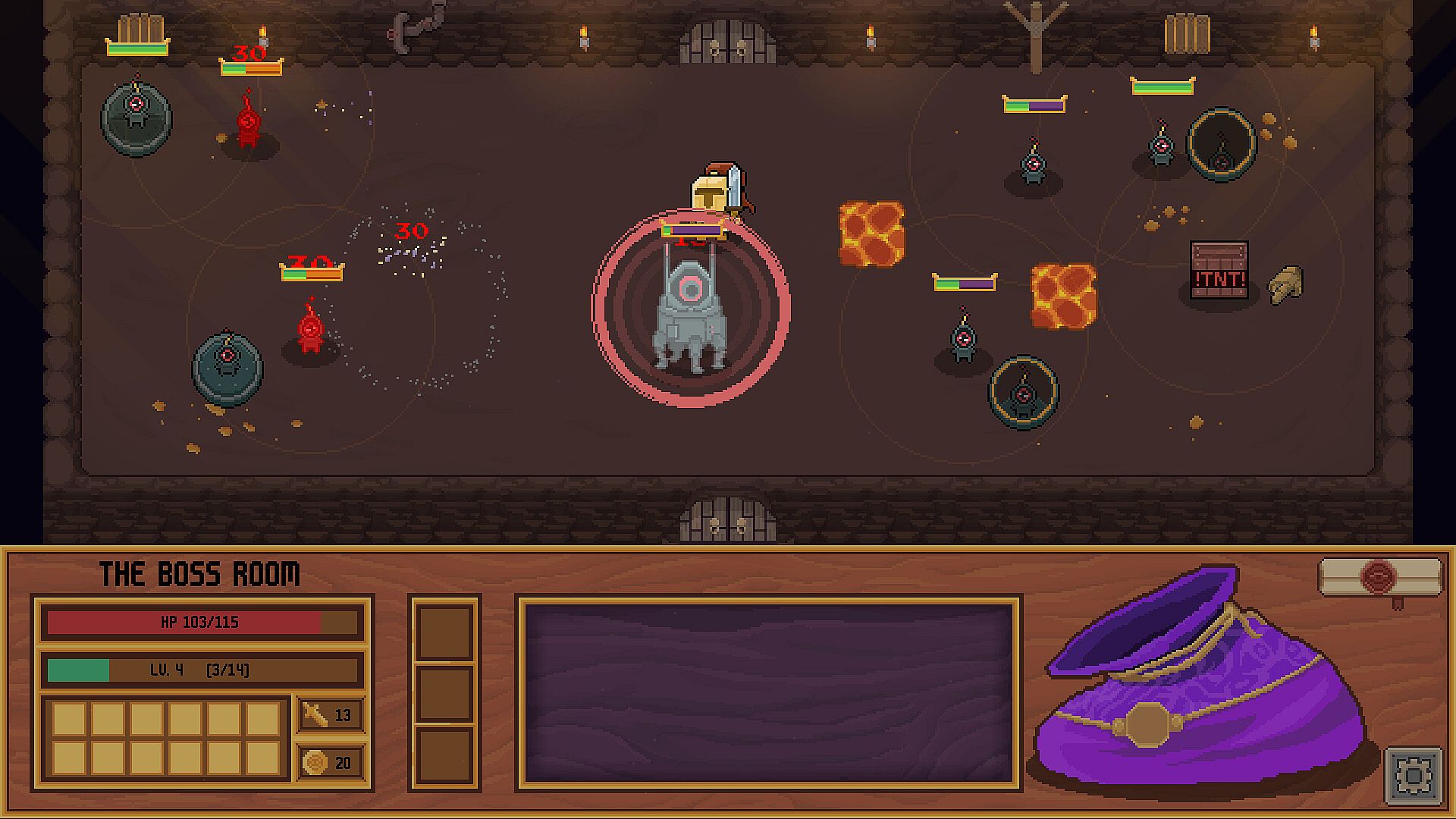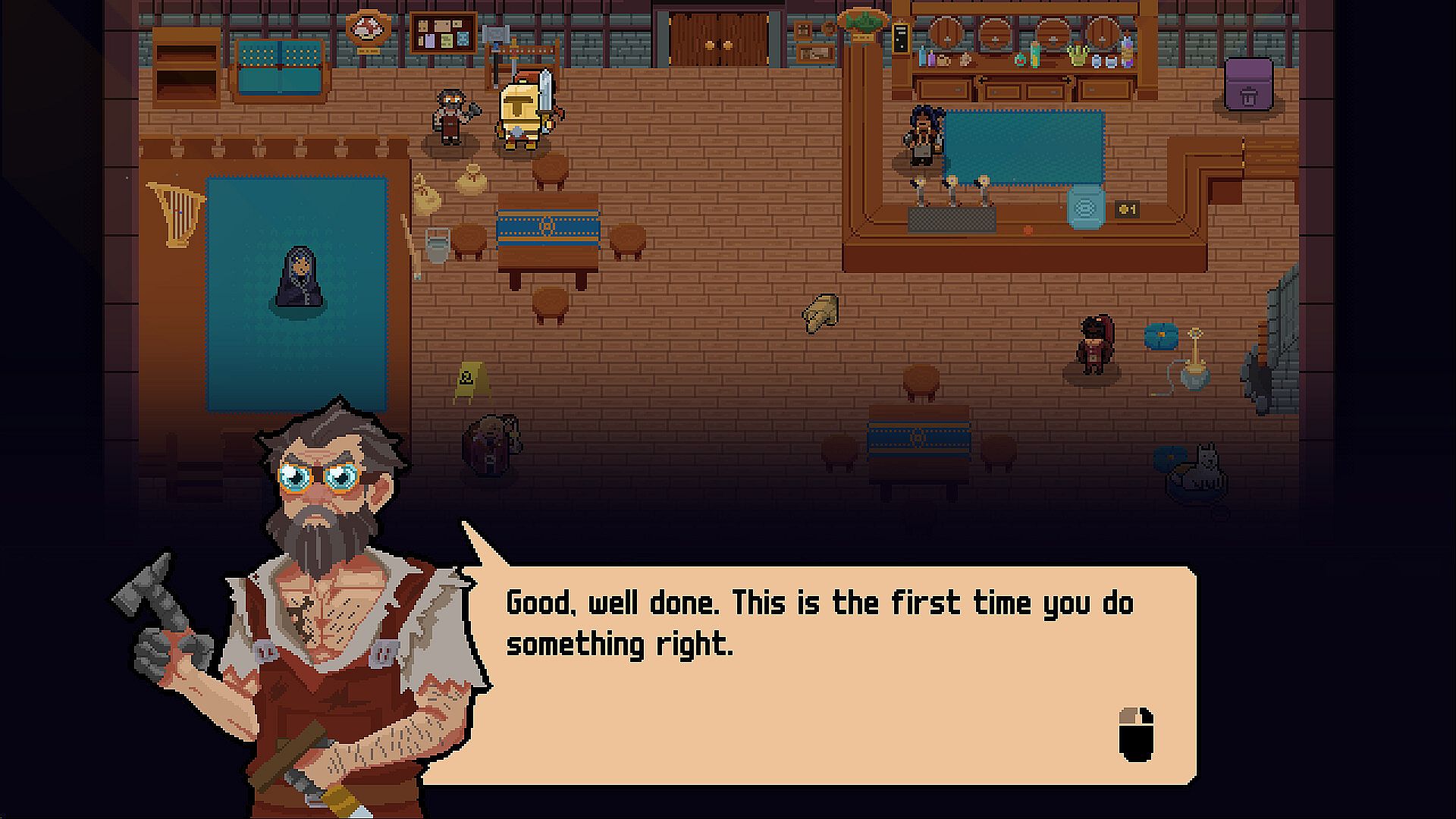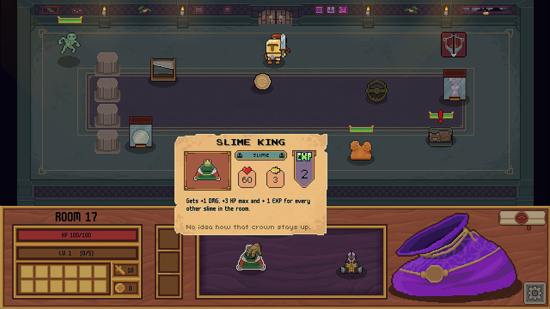 Liven up the bustling dungeon Tavern by finding all hidden (or lost) NPCs throughout the different rooms. Each one of them will give you access to new super useful power ups and to key information that will help you uncover obscure dungeon mysteries.