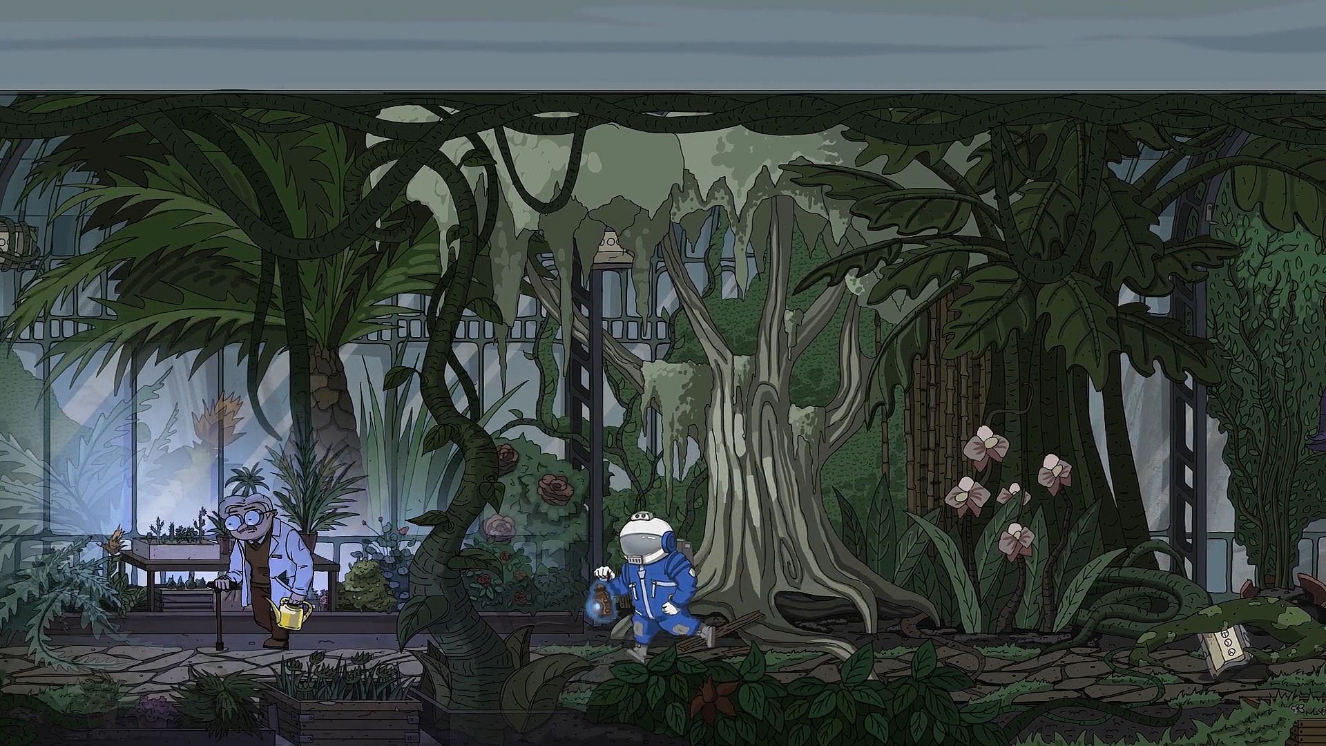 • Wistful hand-drawn 2D art style