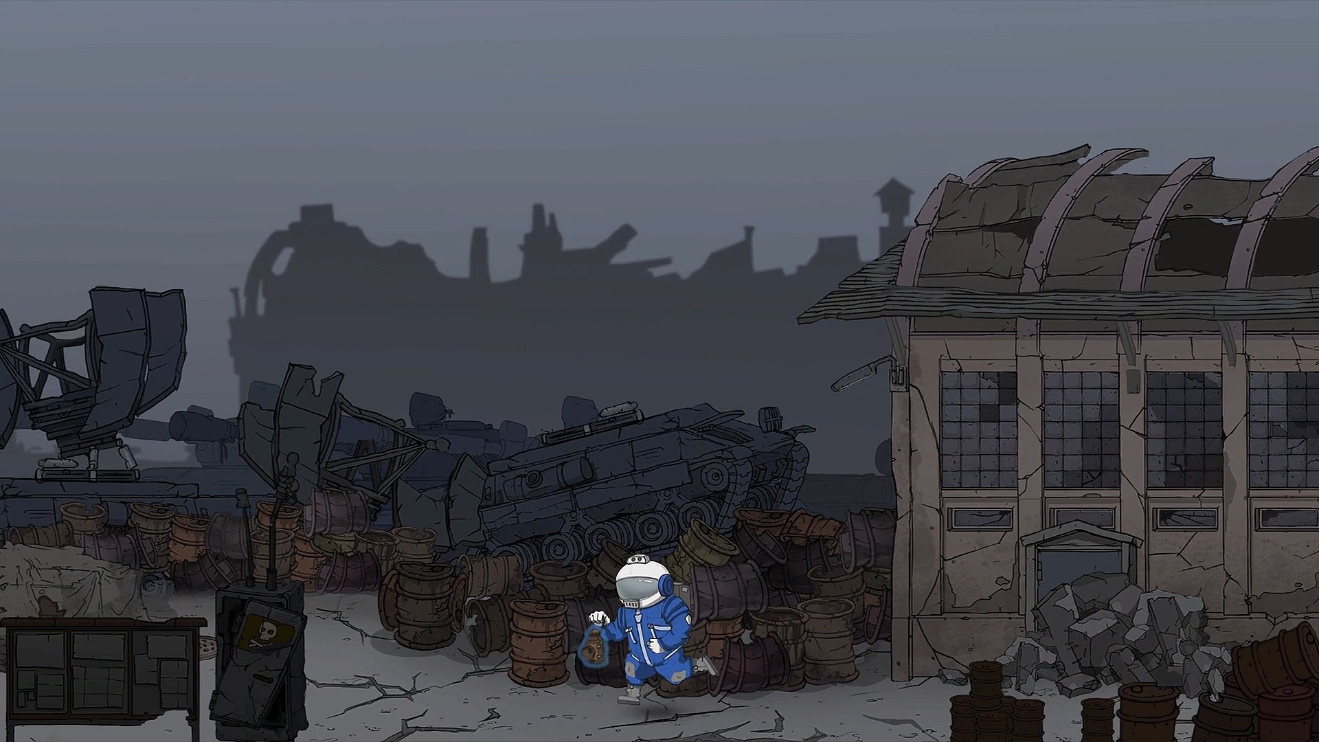 Experience constant time traveling between an empty, melancholic scenery of the post-apocalyptic Earth and its vivid days gone by.