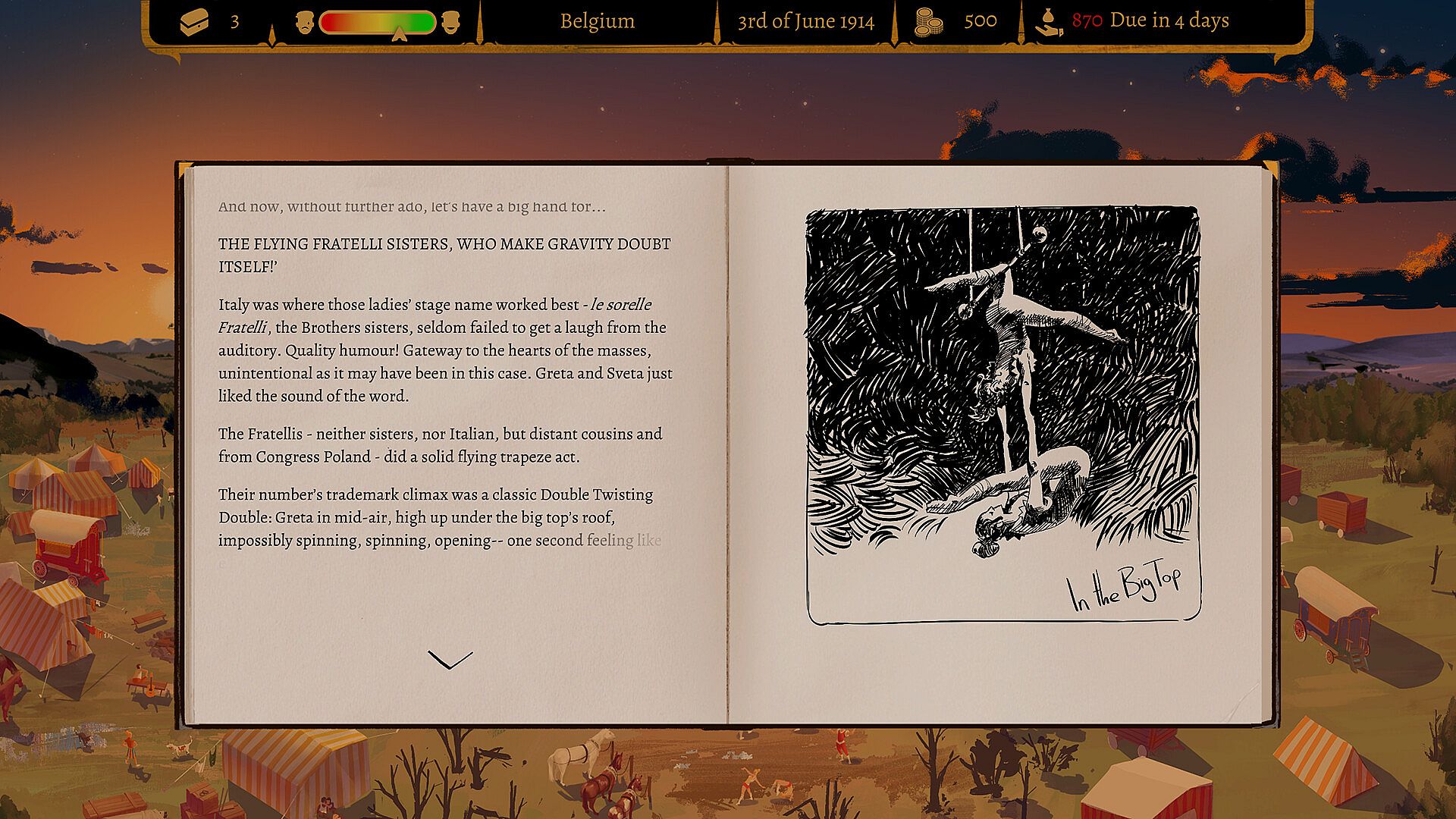 A beautifully written interactive novel about managing a travelling circus in WWI Europe: