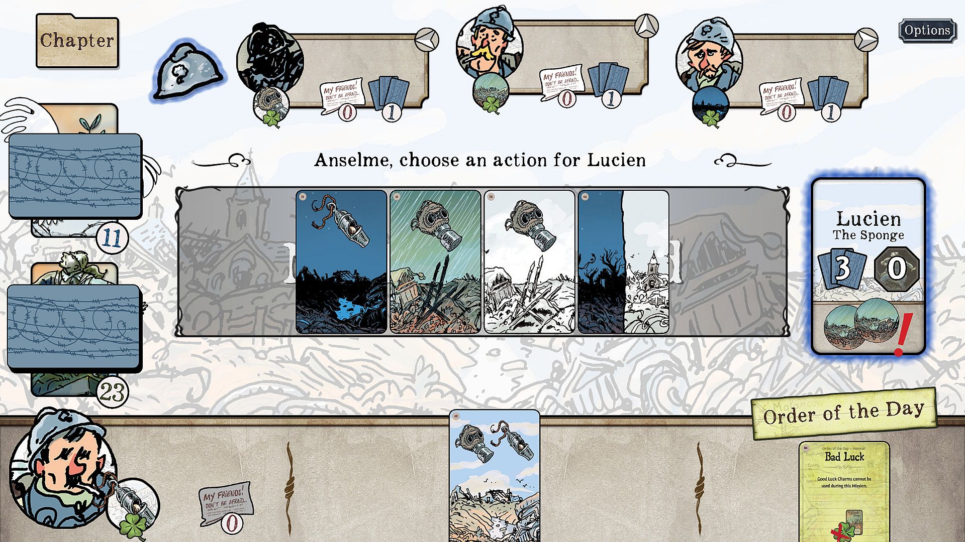 In The Grizzled: Armistice Digital, players take on the role of soldiers facing the Trials and Hard Knocks of the first World War. They work cooperatively across a campaign where they confront the major events of the war. From the introduction scenario of Boot Camp, through the nine different Missions, everything that happens carries forward and affects the next steps of the game. Players will need to make good decisions and support each other if they hope to make it to the end of the war alive.