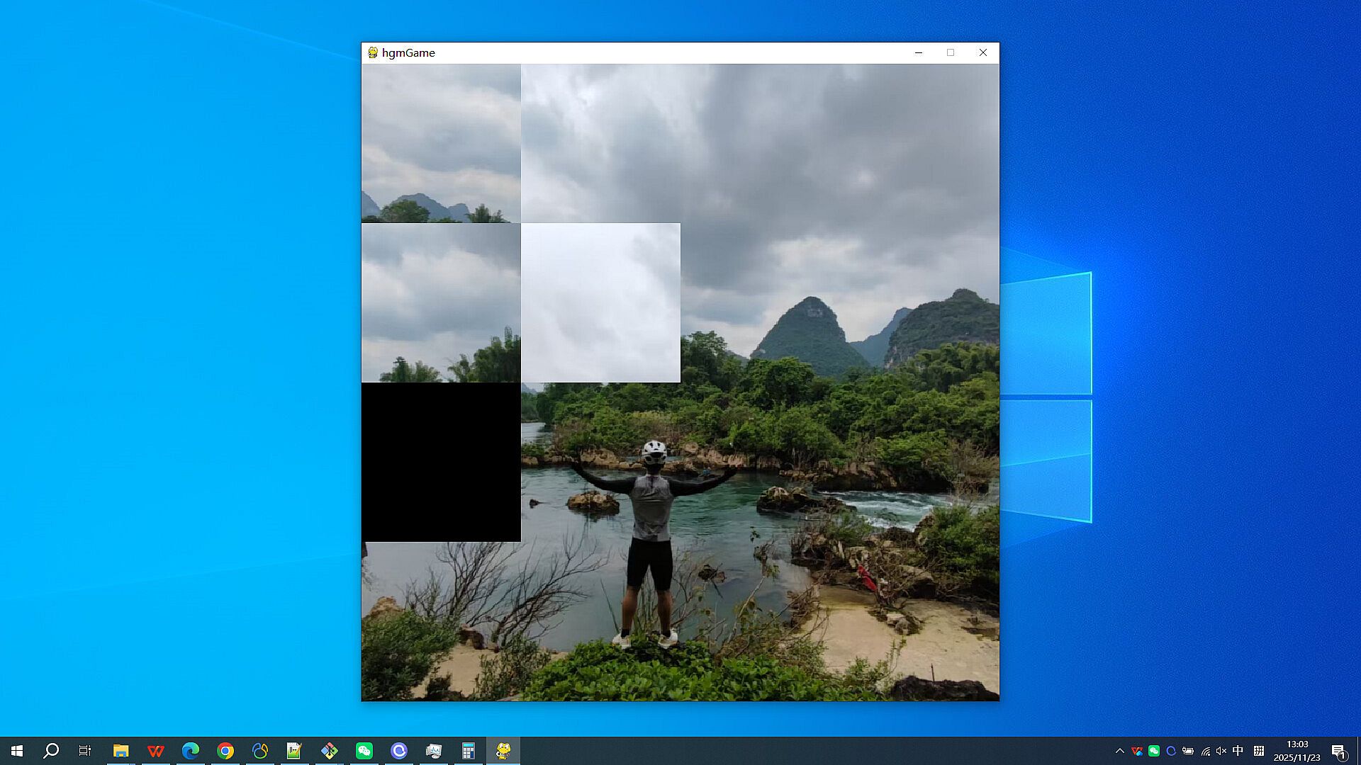 Game steps: Click the left mouse button on the image around the black square, and the image and black square will switch positions. The goal is to assemble all the small images into a complete image. The complete image is as follows: