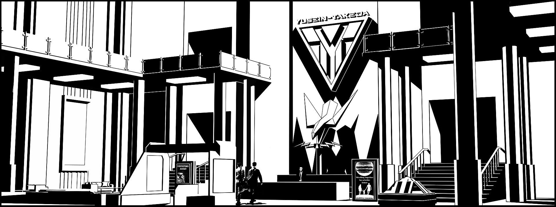 • Yusein-Takeda Corporation - Our protagonists are trying to steal a technological prototype from a research facility that belongs to the Yusein-Takeda corporation, one of the most influential corporations in the System.