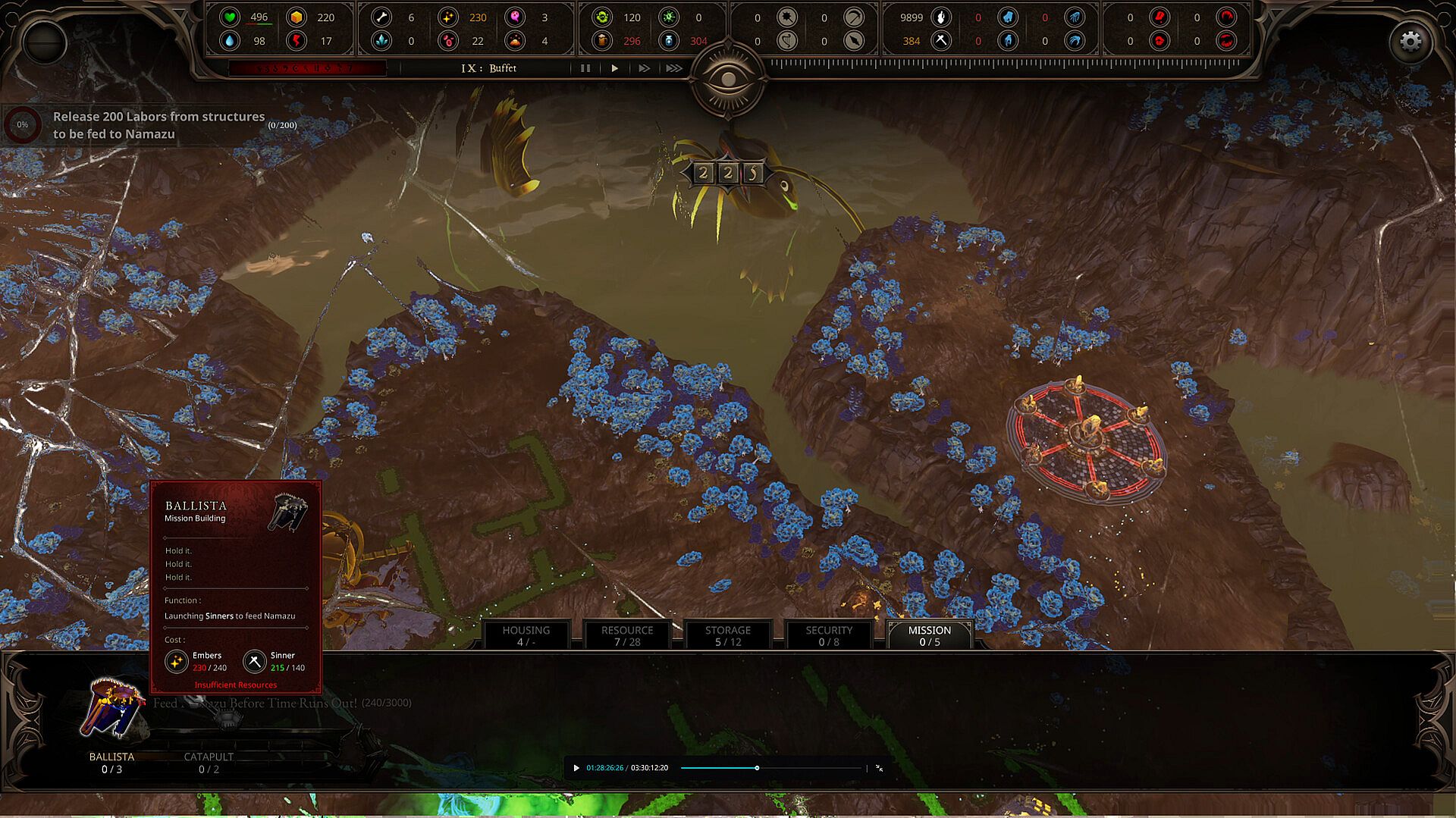 To delay disaster, you must prepare endless offerings of food to drop into the great pit that leads to Namazu’s maw. The more it eats, the calmer the earth remains. But resources are scarce, and the line between feeding the beast and feeding your people grows thinner each day. Crops wilt under pressure, hunger rises among the damned, and soon, your own citizens may turn on each other, forming cults, offering sacrifices, even justifying cannibalism in the name of survival.