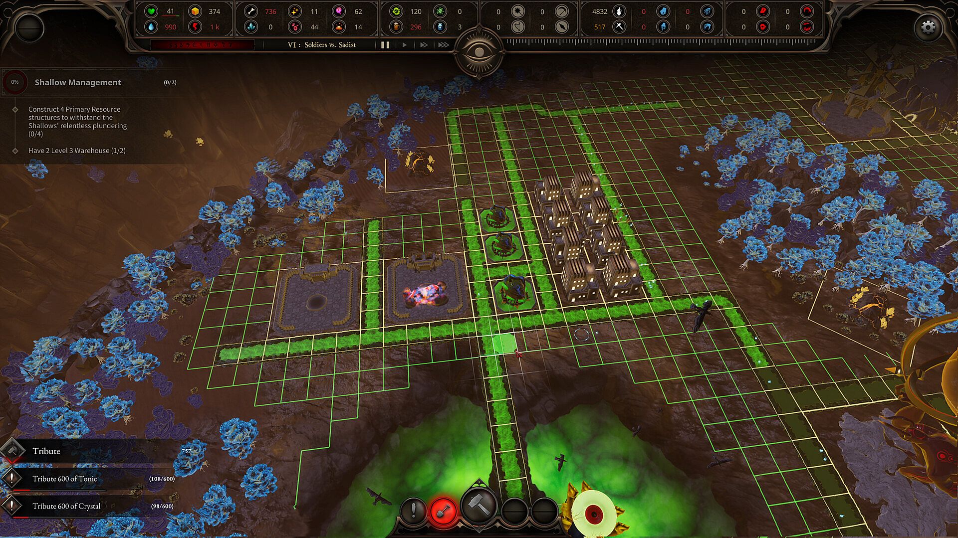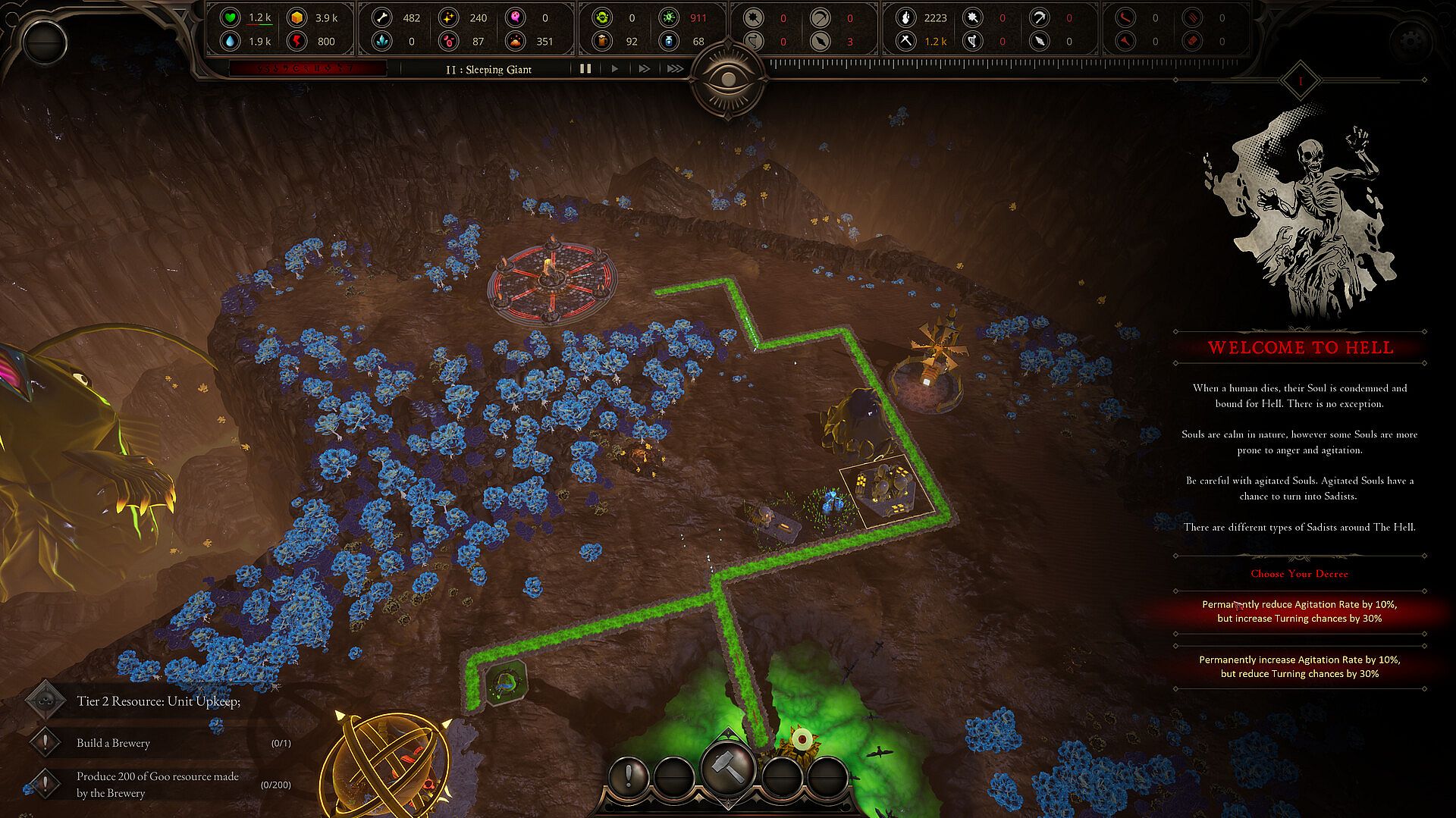 Every run begins with an empty hellscape. Place your first buildings, manage limited resources, and decide your early strategy. No presets, no safety nets, just you and a blank map in Hell.