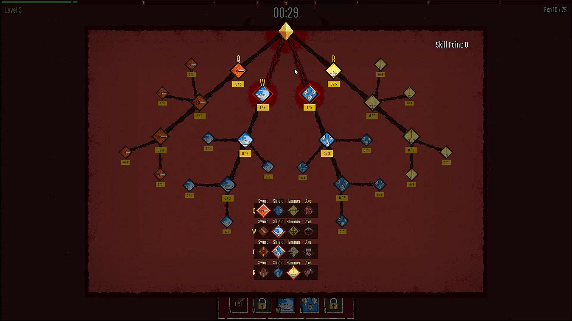 Use skill points earned through leveling up to select a variety of skills. Each character possesses 4 skills, with each skill utilizing unique weapon.