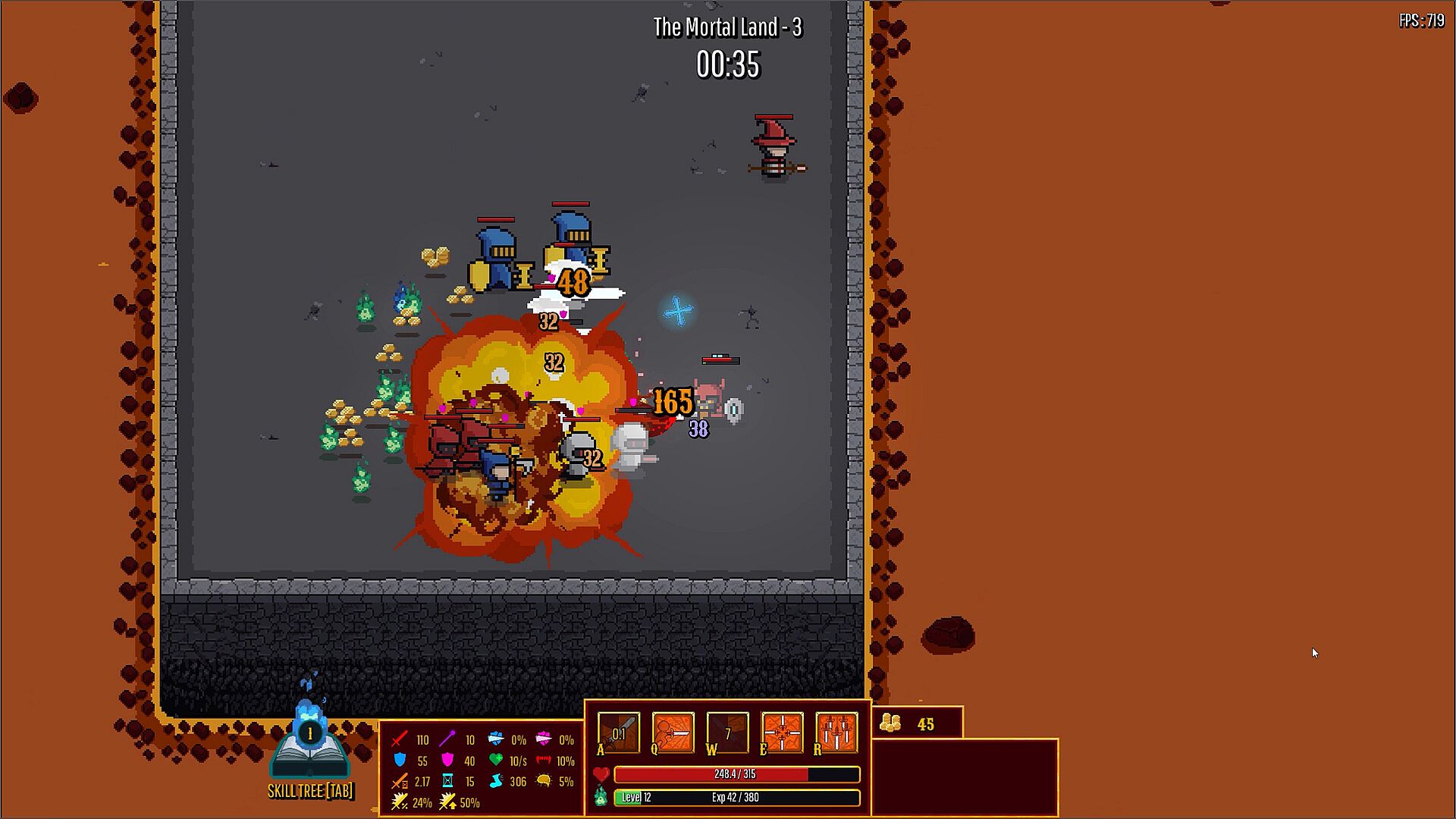 Spend coins earned by killing enemies to buy items and strengthen your character. Depending on the enemy composition, you must adapt your strategy to overcome them.