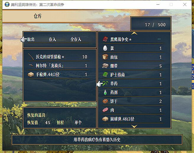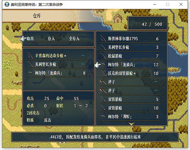 There are various models of rifles, pistols, and swords for your heroes to use. You can also obtain such famous weapons as the Sharps rifle, which gained great fame in Kansas, the Sword of John Brown, and Abbott's howitzer.