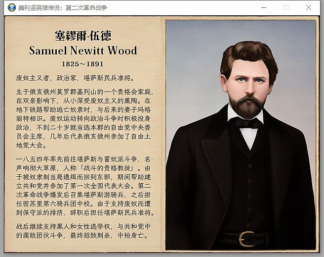 More than 3,000 characters will appear! Currently, 28 heroes are available for selection, including Samuel Wood, Samuel Tappan, Daniel Anthony, John Doy, George Deitzler, Samuel Simpson, Samuel Walker, John Wakefield, Robert Buffum, Thomas Barber, Thomas Bickerton, John Brown, Edward Fitch, and James Abbott.