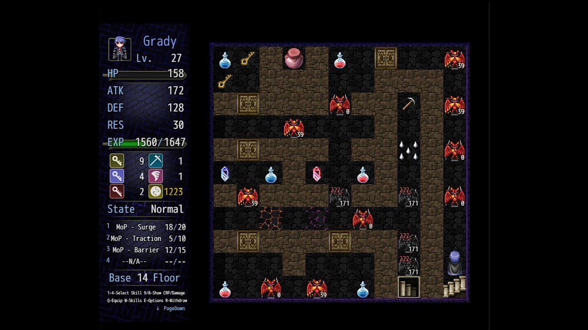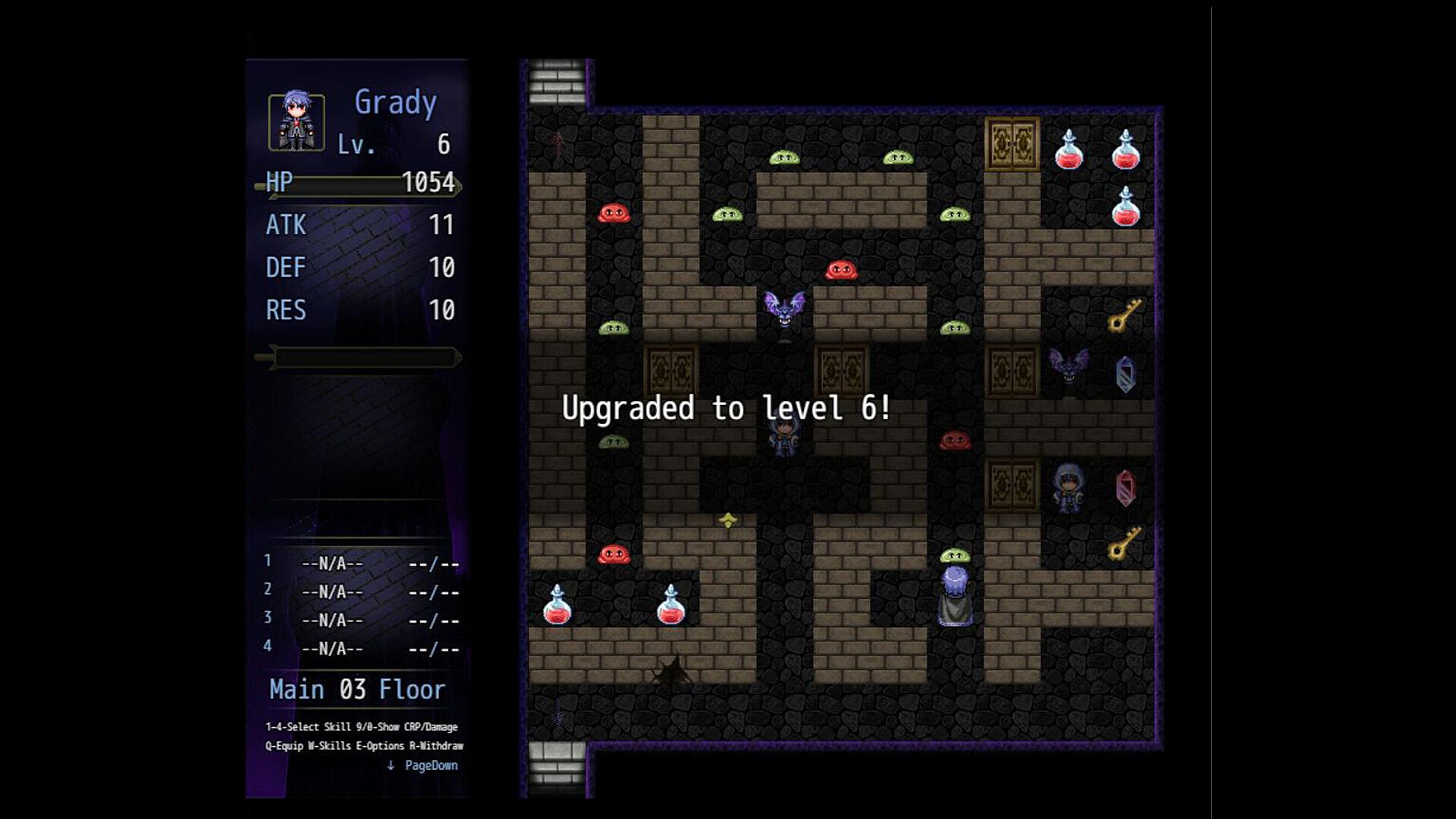 Q - Equipment; W - Skills; E - Options; R - Withdraw