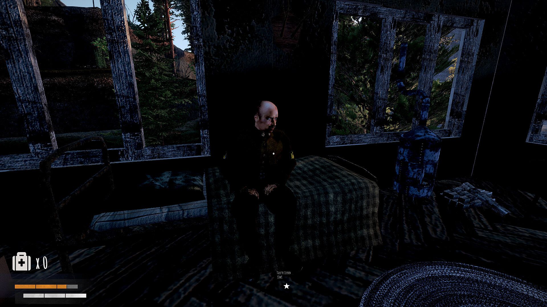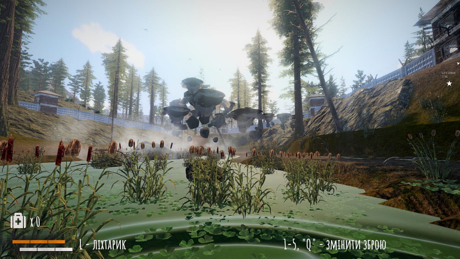 Not only the surroundings change in the game, but also the natural conditions. The game features both fog and rain with thunderstorms. Depending on the weather, you can sit by the fire to wait out the dark night or approach people to see if they are human at all.