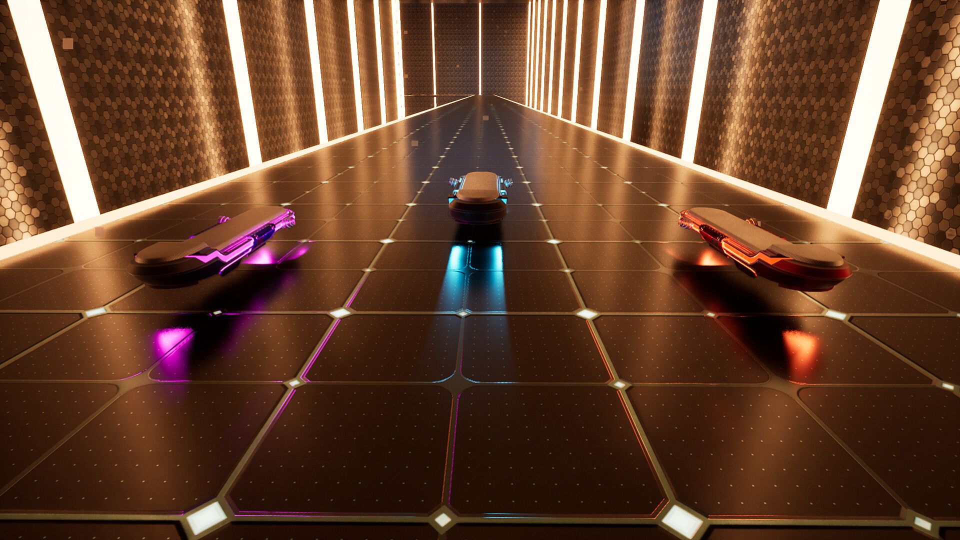 Ready to defy gravity on a neon-lit hoverboard track suspended in space?