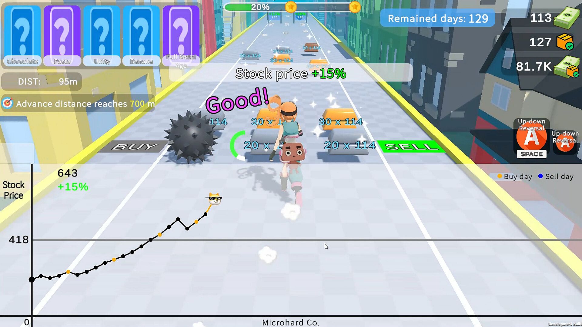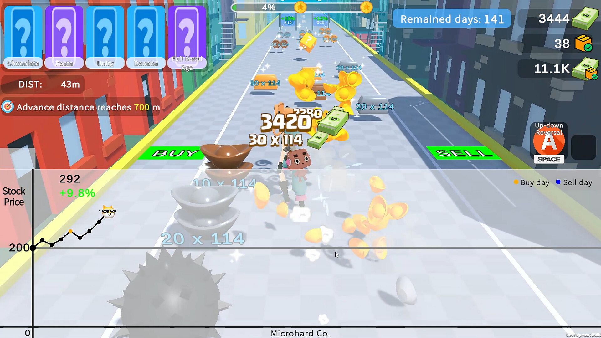 Cash, items, stock trading, obstacles, fluctuating gates... nearly a hundred different objects appear along the track, with each encounter bringing surprises and rewards.