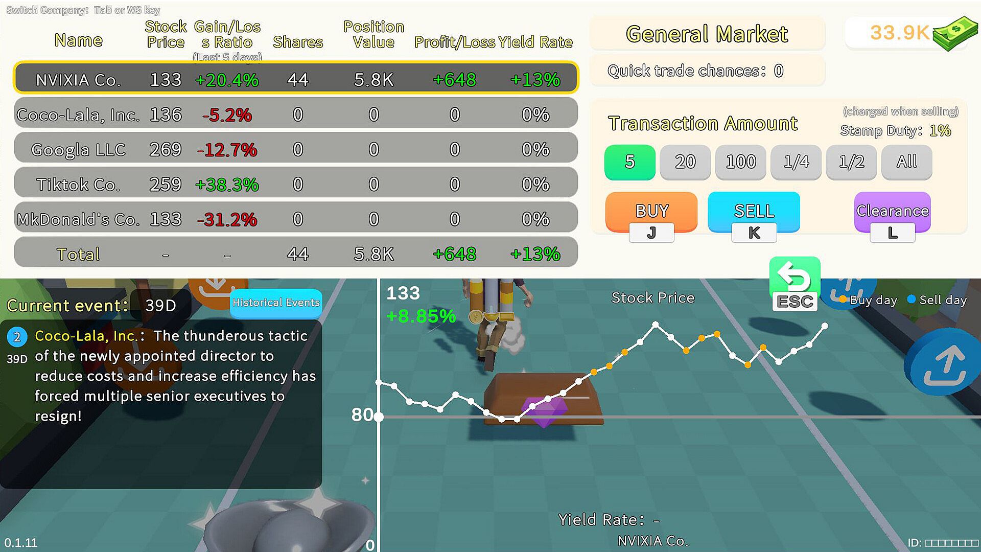 This is a rougelite card game that combines parkour-style with stock speculation. You can experience the journey from a stock trading novice to the most powerful king of stocks! More casual or more strategic? It's your choice!