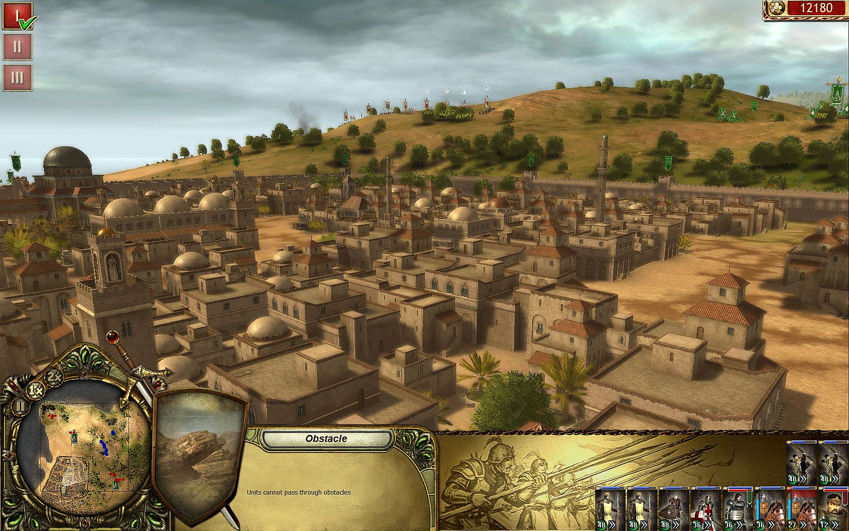 Assemble armies as Richard the Lionheart to reclaim the Holy Land or lead Saladin's forces against invaders in this real-time strategy game set during the Third Crusade from 1189-1192. Guide historical factions through political events, fierce battles, and territorial conquests on a fully 3D map. Upgrade leaders, manage troops between missions, collect relics, and unlock new content to fulfill campaign objectives. Command hundreds of soldiers in epic real-time clashes while expanding your realm and rewriting history with famed characters at the helm. Play through dedicated Crusader and Saracen single-player campaigns. Strategy fans who relish army oversight, leader upgrades, and conquest-driven gameplay will find a focused challenge here.