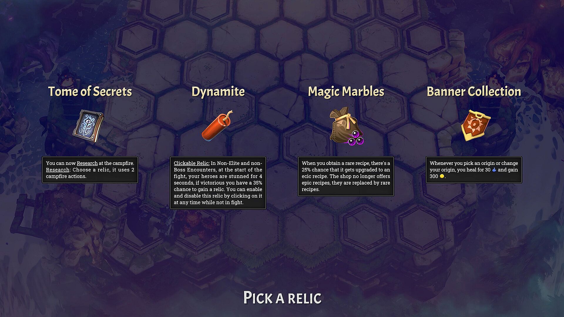 The Last Flame offers an incredible amount of build diversity. Combine heroes, items, relics and origins together to create amazing builds! Hero and team building have been designed with flexibility and freedom at their core which allows you to discover and create unique synergetic builds every single run!