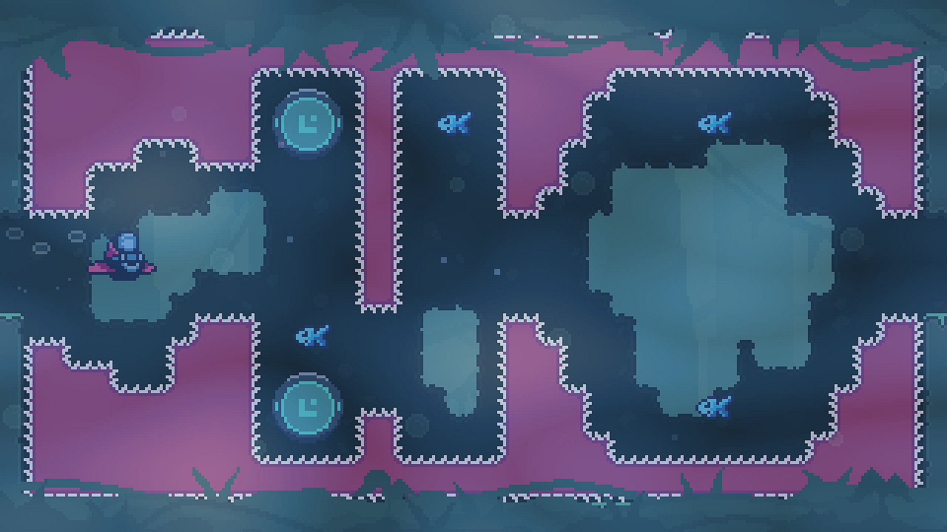 • Jump, double-jump, jet, dash, and fast-fall (in any order). Your jetpack has a limited range, but it resets when you land on solid ground.
