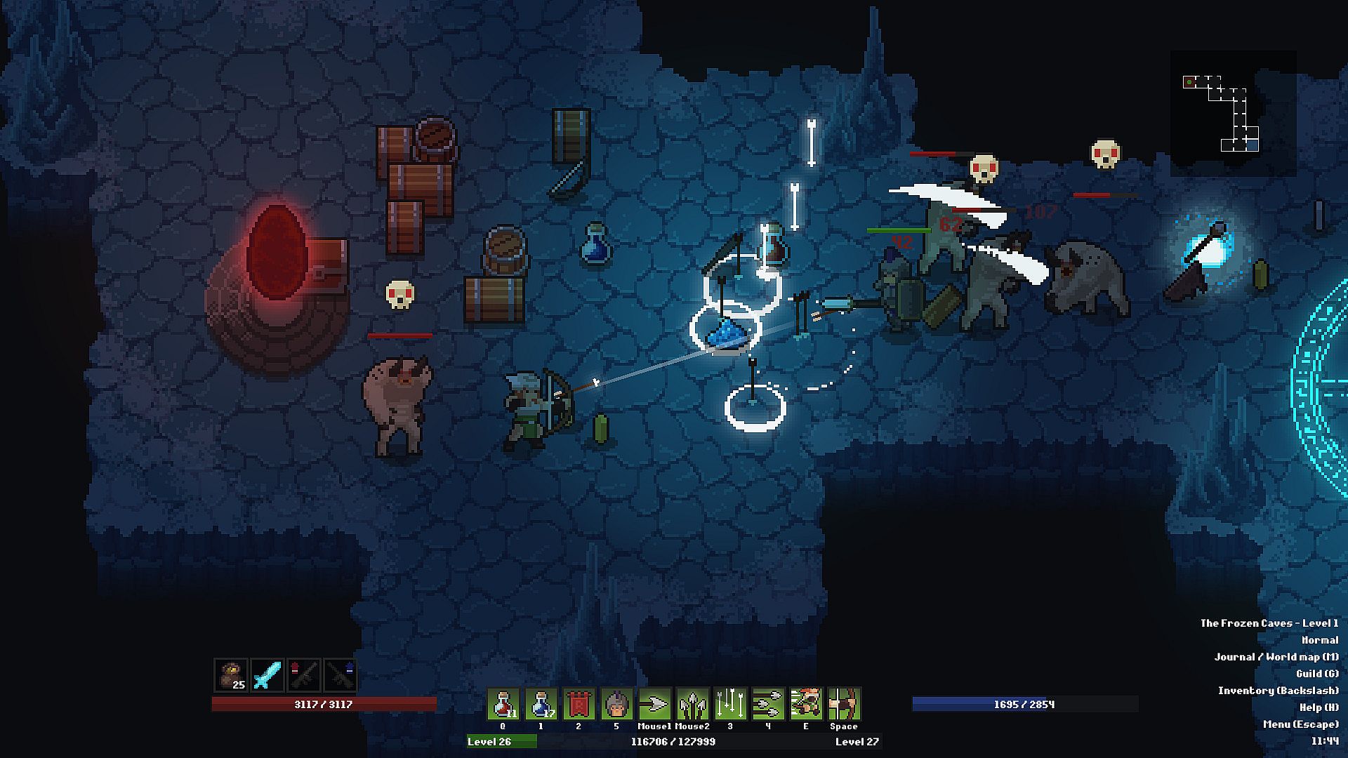 - Procedurally generated exteriors and dungeons with different enemies, traps and bosses.