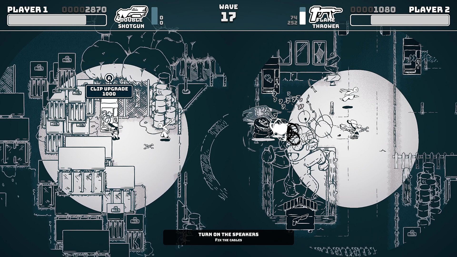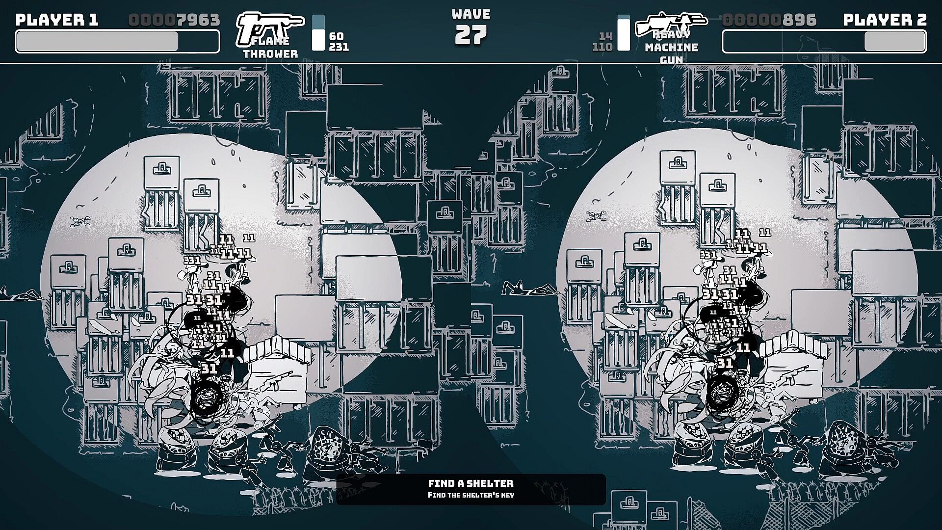 Explore the multiple rooms to increase your firepower and purchase every single boost to match the ever increasing waves of zombies! Beware, however, as darkness might become an even bigger problem that those putrid foes.