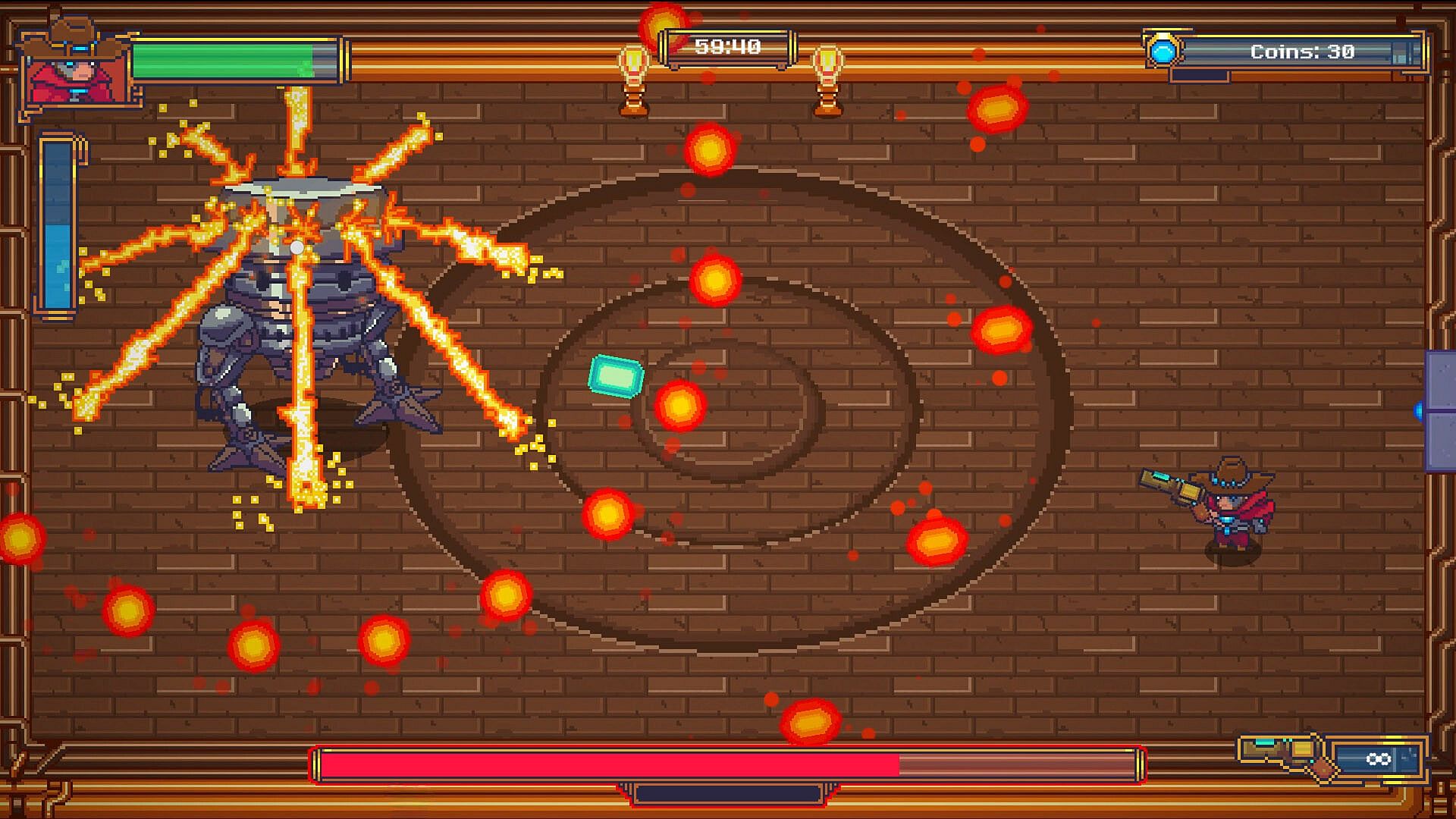 The wild west gets even wilder with the development of cybernetic technology, and it’s up to you to take down the bandit gangs turning this tech against honest and hard-working locals! Step into the role of a steampunk gunslinger with a mechanical arm and loads of enhanced weaponry at your disposal. The Legend of Cyber Cowboy is a top-down twin-stick shooter presented in slick pixel art style.