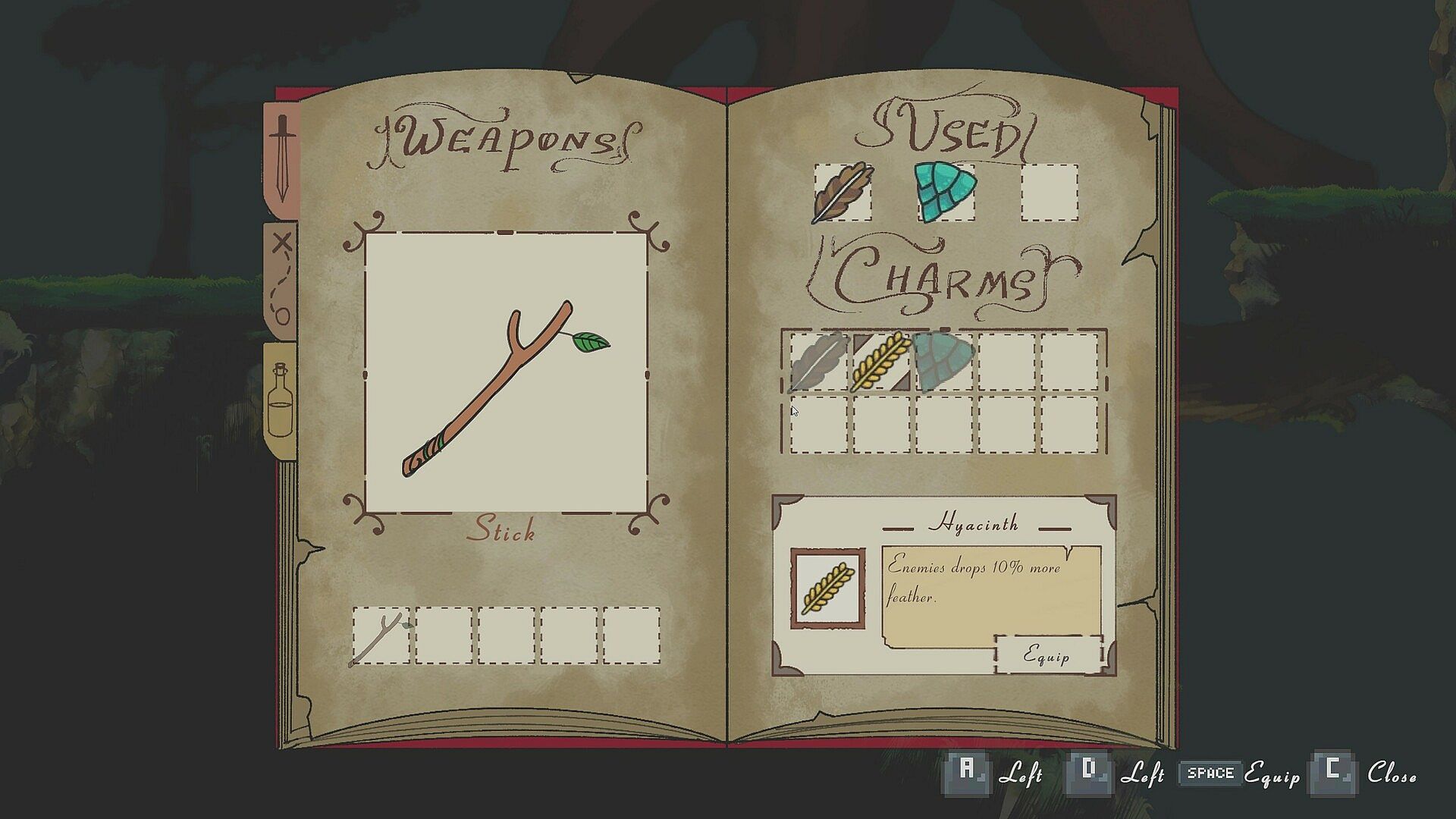 Charms - can equip and give some boost and abilities.