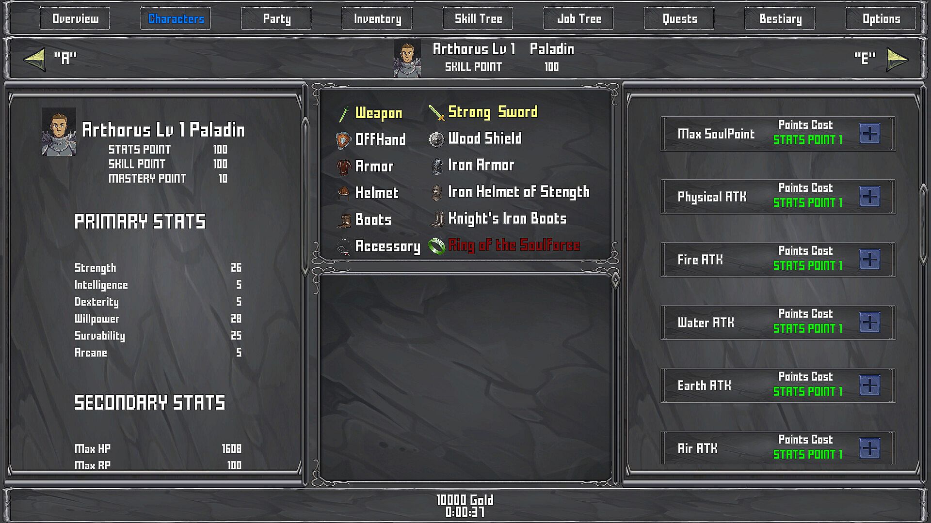Each character has its own archetype influencing the stats obtained after each level up. These stats are automatic and cannot be changed, accentuating the character's core mechanics without major impact if you decide to customize your character outside of their core mechanics.