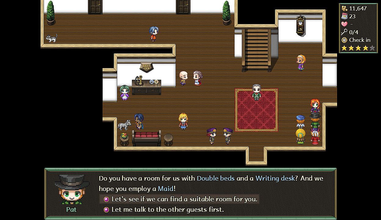 • Configure guest rooms, purchase amenities, and upgrade the manor and nearby village to keep your guests happy.