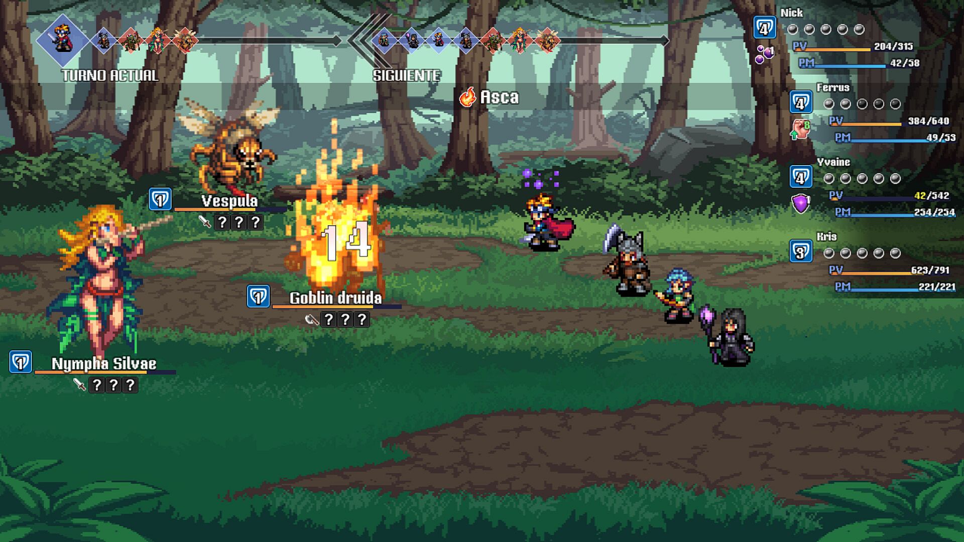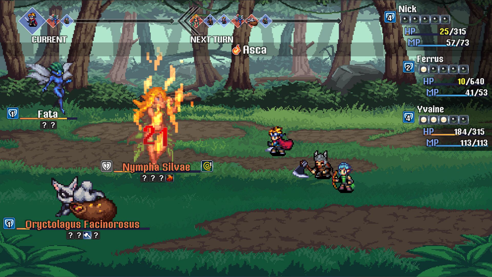 Nick: The central figure of this epic tale, customizable with the name of your choice. As the Hero, you'll lead the charge with a sword and fire magic. This well-rounded character excels in both offense and defense, making him a versatile choice in any battle.