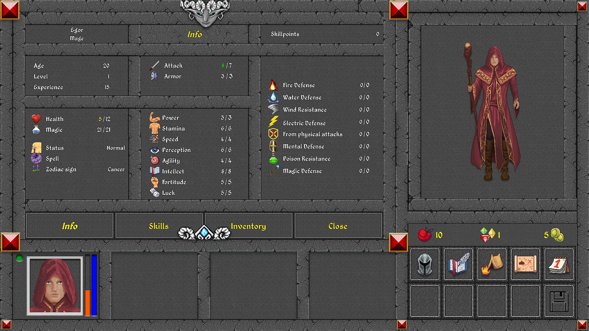 You start in the dungeon of the Stone Castle. The castle is surrounded by the enemy army of King Livard. Your teacher, the Grand Magist of water Magic, Nikolai Theron, has ordered you to come to him to receive your first instructions...