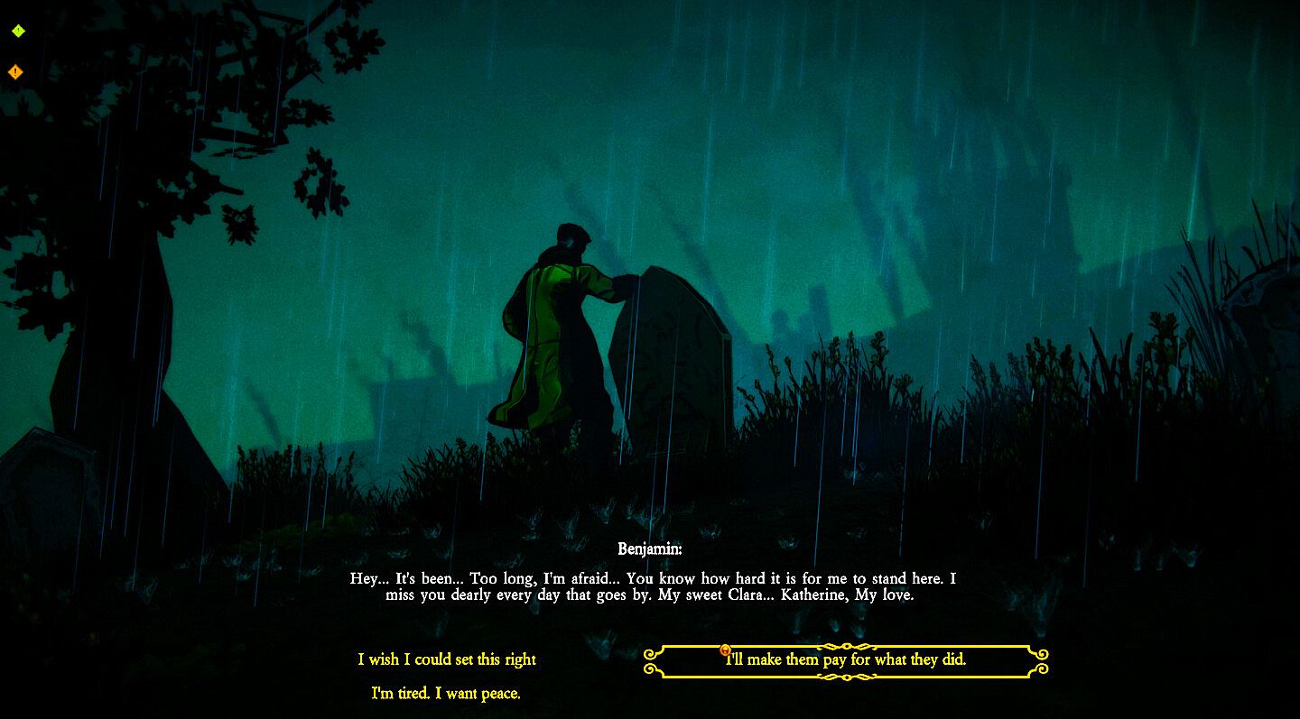 The game has a rich and complex narrative alongside with combat Cards and deck-builder mechanics, also a semi-open world for you to explore. You have to be mindful of the stress levels of Benjamin, since his actions and decisions will be affected by it. You can perform several activies to relief stress around the city. Be careful of alleys, some might see you as a target and will try to rob you. You can adopt a Pet to help you cope with your mental health situation and relief some stress.