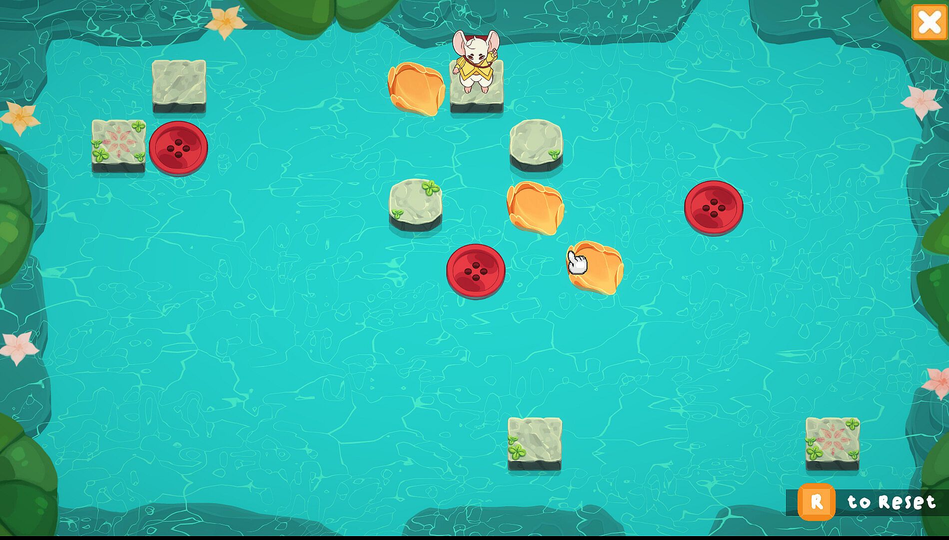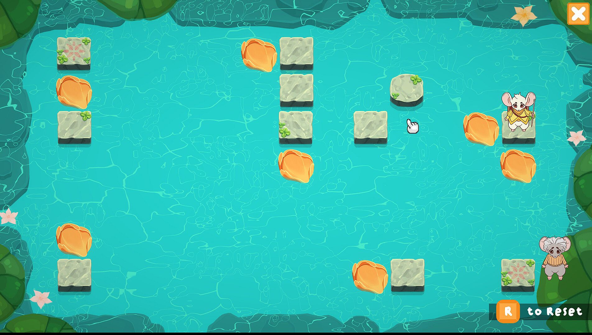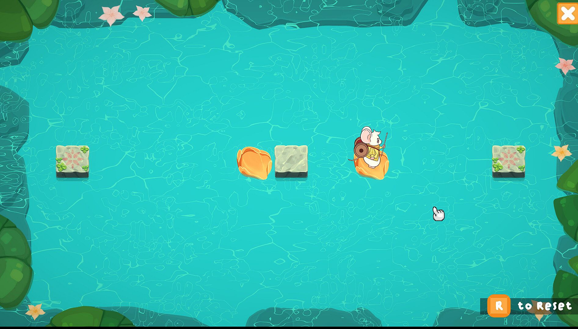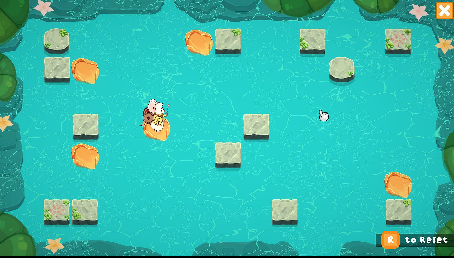 The Mouse the Merrier is a cozy puzzle game about reuniting a mouse with his lost family. Traverse through a beautiful flooded landscape, sliding along floating petals and hopping onto buttons. Help Mousimus find his family and try your best not to leave anymouse behind!