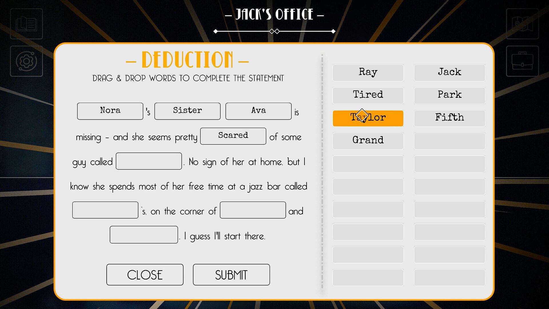 By interacting with people, places and objects, you’ll unlock DEDUCTION WORDS that connect the dots and help you make insightful connections.
