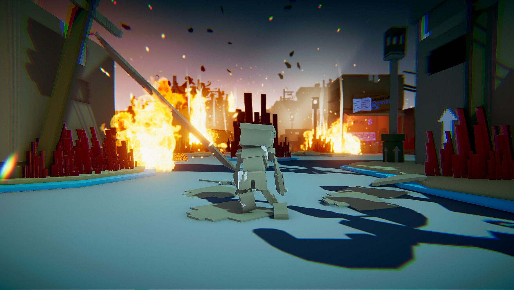 All the art in the game is made from (digital) cardboard! We wanted to push this artstyle as far as possible. Houses open up when you enter them, the characters can enter inside one of their own boxes to rest, some animals are made of origami... Come and enjoy this cozy cardboard world.