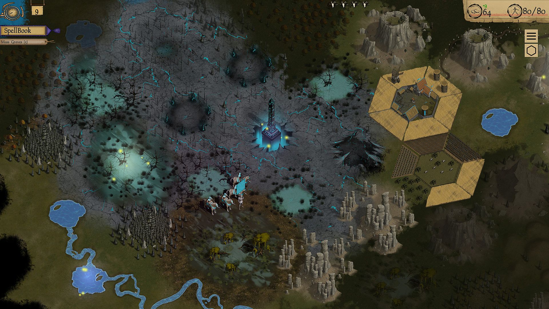 A unique magic and turn-based combat system with no RNG. Carefully position your units, each with their AOE attacks. Make use of carefully-planned battle formations. Use powerful magic to change the terrain to your advantage. Curse and destroy enemy units. Corrupt and spoil the land to put your enemies at a disadvantage. Summon special units for each of the 5 factions.