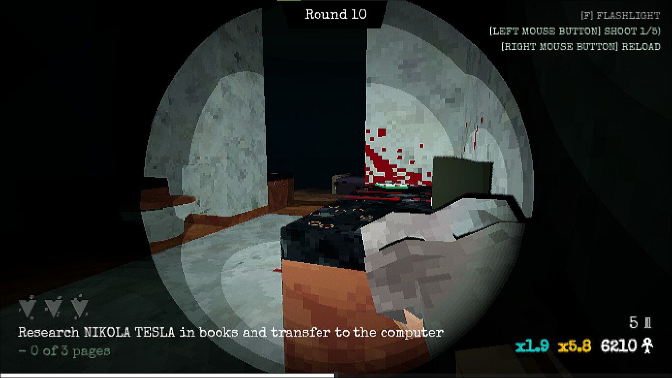 Interact with the scenario in creative ways. Position cameras, land mines, and shoot shotguns at the Anunnaki. Out of ammo? Use kitchen plates, improvise something.