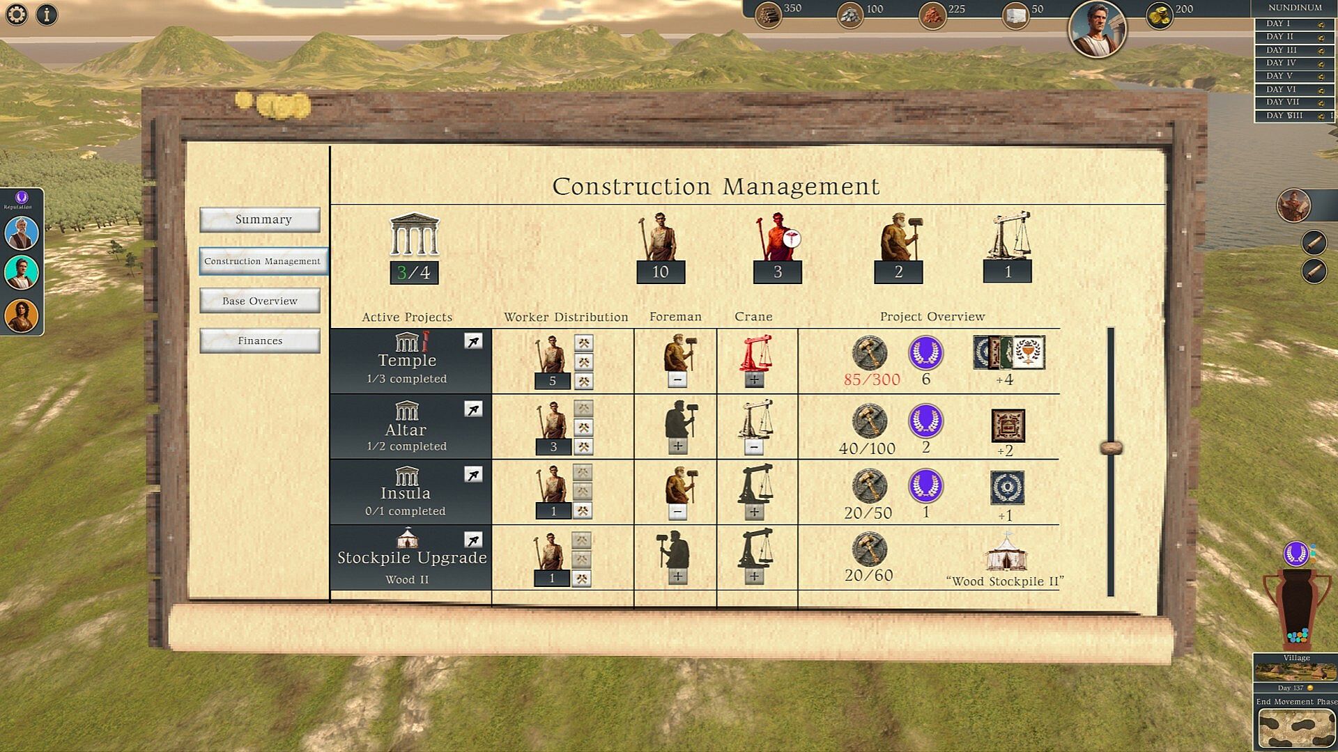 Gather essential resources like wood, limestone, clay and marble to advance your building projects.