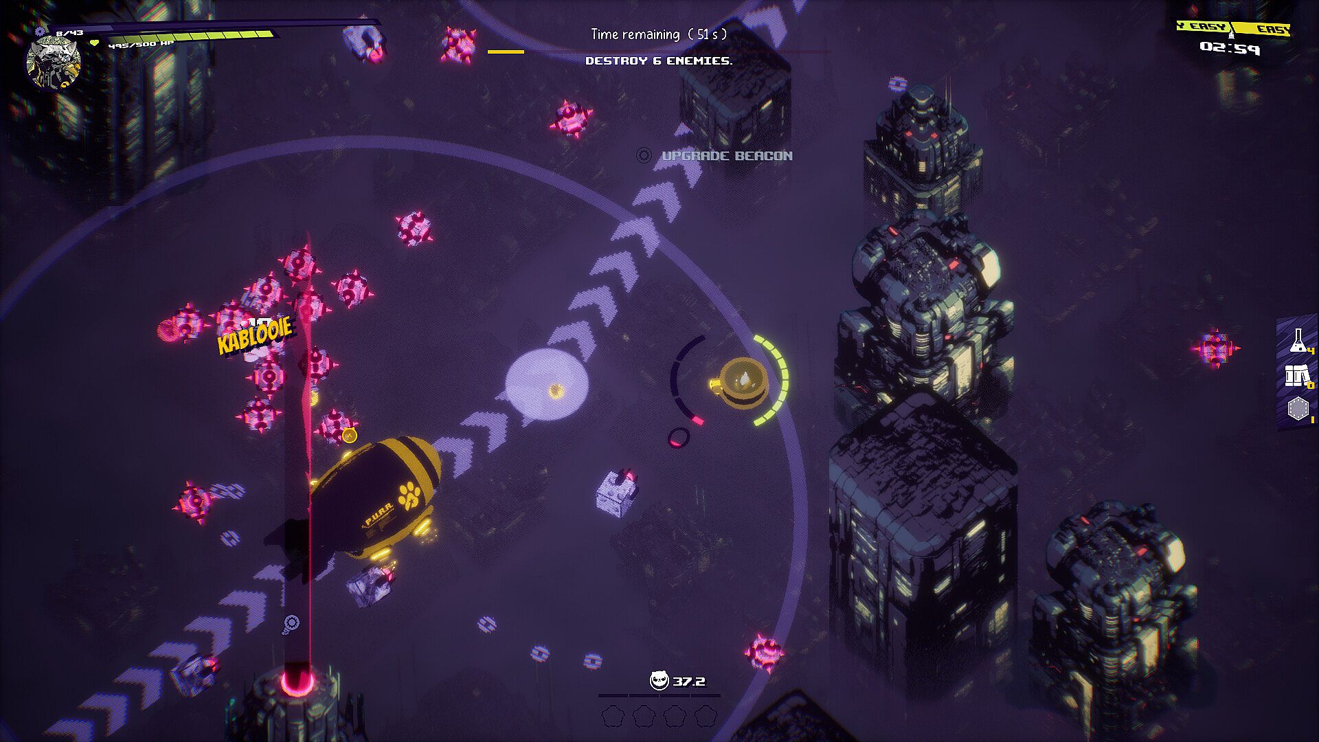 With the P.U.R.R. deployed, it's a race against time to navigate your ship through the explosive chaos of the planetary annihilation and reach the extraction point before the blast consumes everything.
