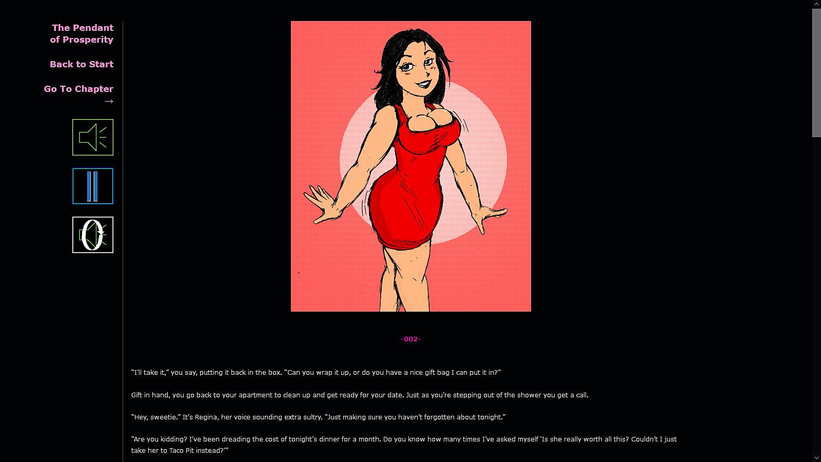 You get to decide what happens in this piece of interactive erotic software the wave of the future! Featuring over 20 hand drawn pictures by the awesome artist Saxxon and at over 80,000 words by Adipose Rex this text-based adventure isnāt only read by you, you can have it read to you! Every single chapter and choice features narration, sound effects as well as stars characters fully voice acted by the star of the audio experience, the lovely voice actress Mama Strassa! So prepare for erotic as well as the echoic! Of course, youāre free to pause, replay, or just mute the audio all together if you want! You have the power!