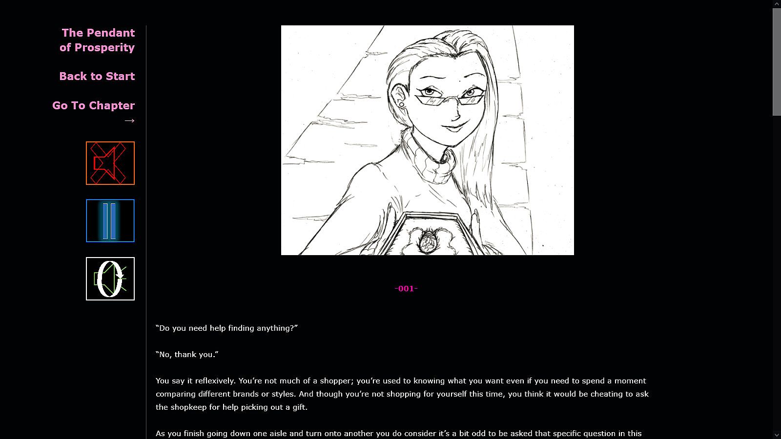The Pendant of Prosperity is the first in the new U.C.H.E.W.S line of interactive fiction from Earthbound Books! The stories where Users Choices Have Enormously Weighty Significance!