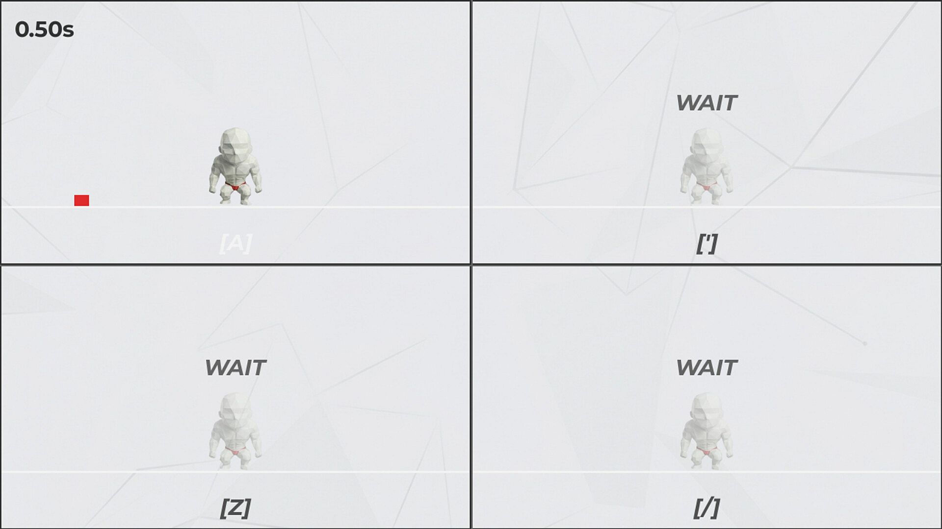 Hand Eye:Â Sync left (ZASX) and right (Arrows) inputs to the beat without error.