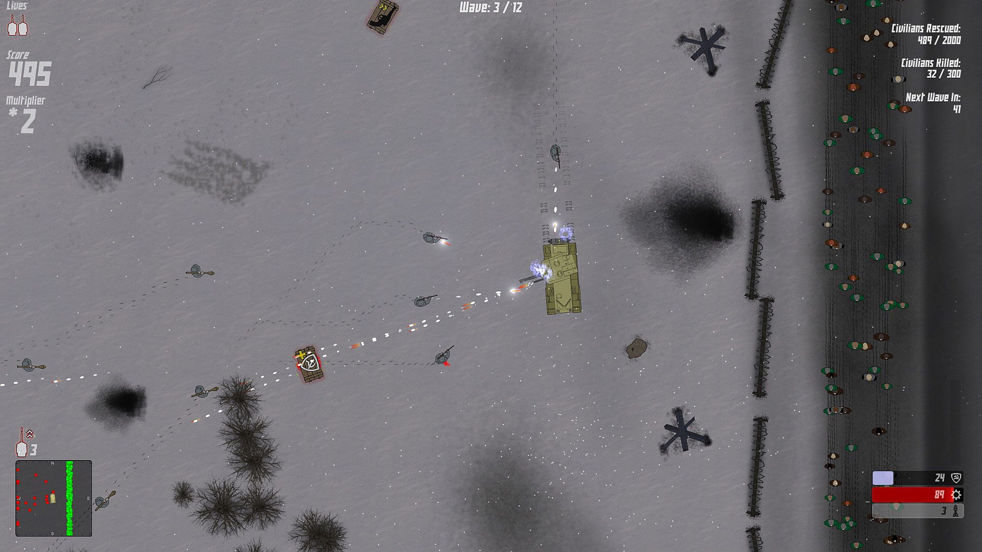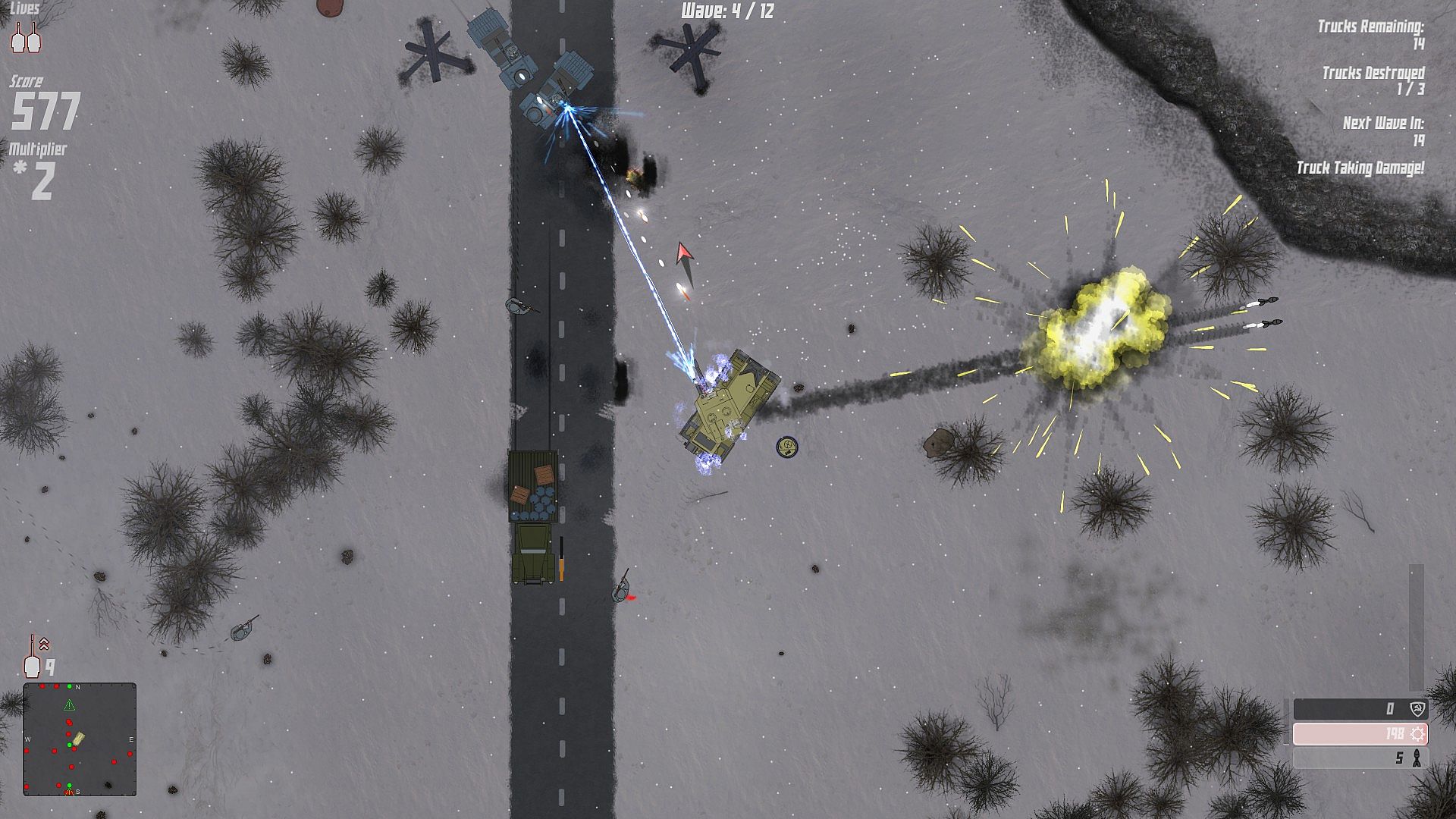 Command a secret Soviet super tank in an alternate World War II timeline. Pilot the machine through battles from Moscow to Berlin, crushing Nazi forces while defending the capital and pushing toward Hitler. Lead allied comrades into dynamic combat against invading soldiers, with weather like sun, rain, snow, and storms altering the fight, plus day and night options for tougher challenges. Earn Rubles to buy tank upgrades such as shields and weapons from the Workshop. Tackle Survival Mode against endless enemy hordes that grow stronger, or activate the Mutation System to make foes faster and deadlier. Unlock 34 achievements, hidden tech like lasers and mutants, and a secret level by collecting items, drawing fans of intense indie action tank warfare on PC.