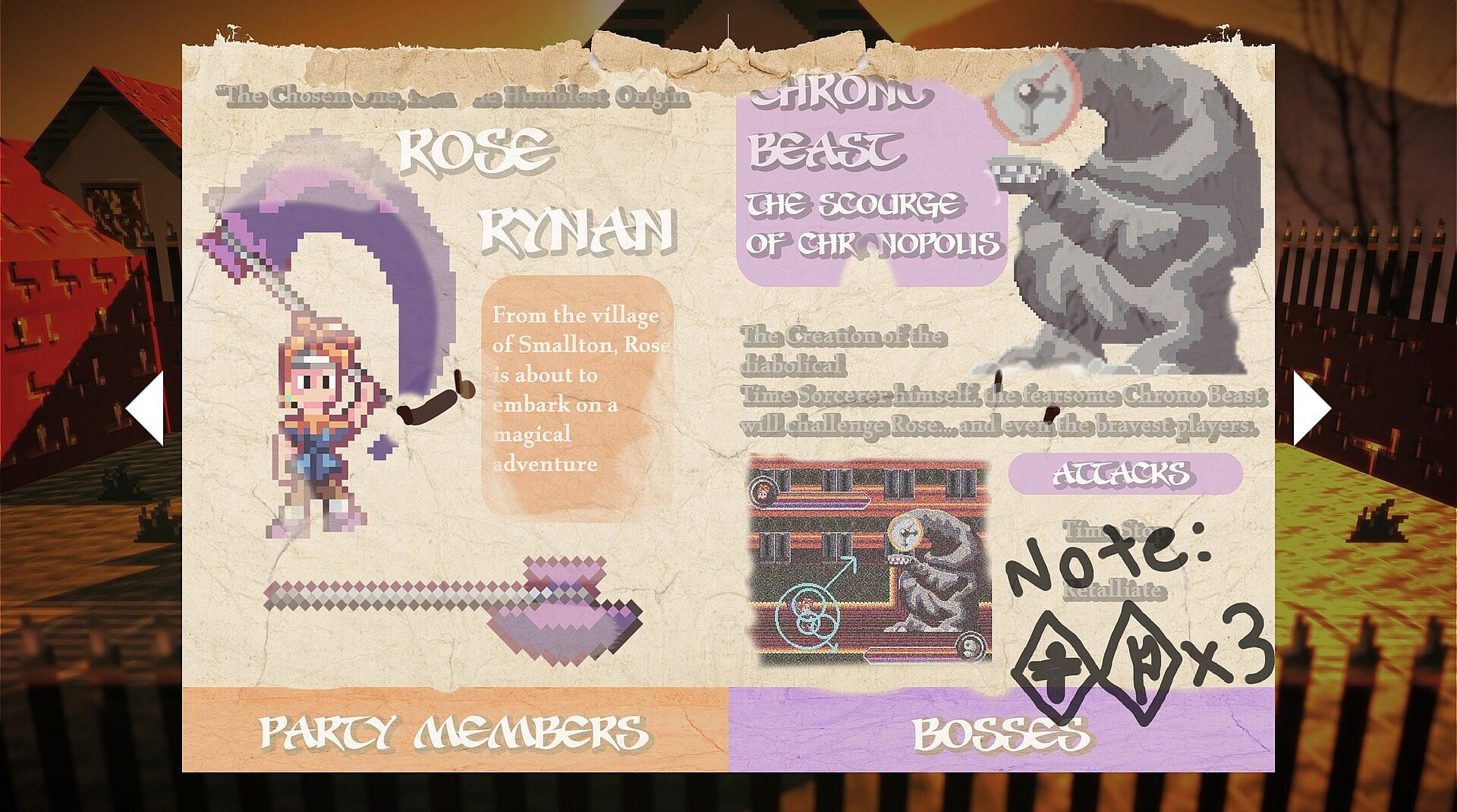"The Remake of the End of the Greatest RPG of All Time" (TRotEotGRPGoAT for short) is the last hour of a lost (nonexistent) JRPG, "remade” in 3D pixel art complete with director’s commentary, the digital manual, and archival footage.