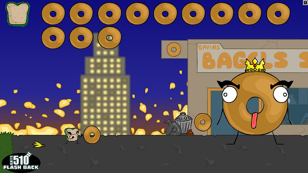 Free bagels day is great ... as long as you do not have a bagel king in your path. This game has you fighting your way past a bagel king to finally get the free bagel you wanted all this time.