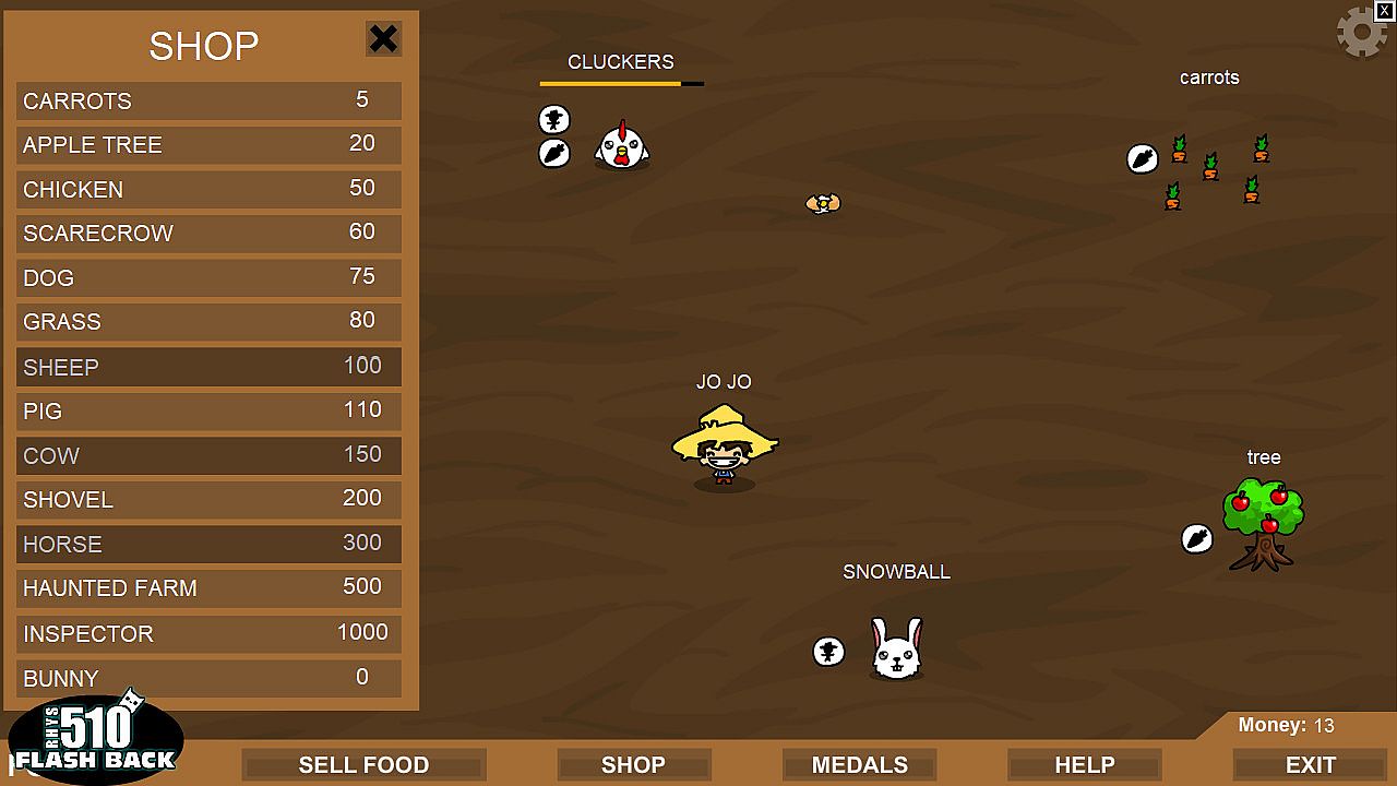 This is a farm managing game with 3 different modes: Classic,Survival and Freeplay. These unique modes offer different experiences that will change the way you farm. Classic mode has a bar that has to be kept up by having activity on your farm such as your animals running around or general harvesting. Survival adds a scoring system and makes the game unbeatable but will show your score when the farming ends. Free play gives you all the time in the world as there is no way to fail and even gives you a free bunny!