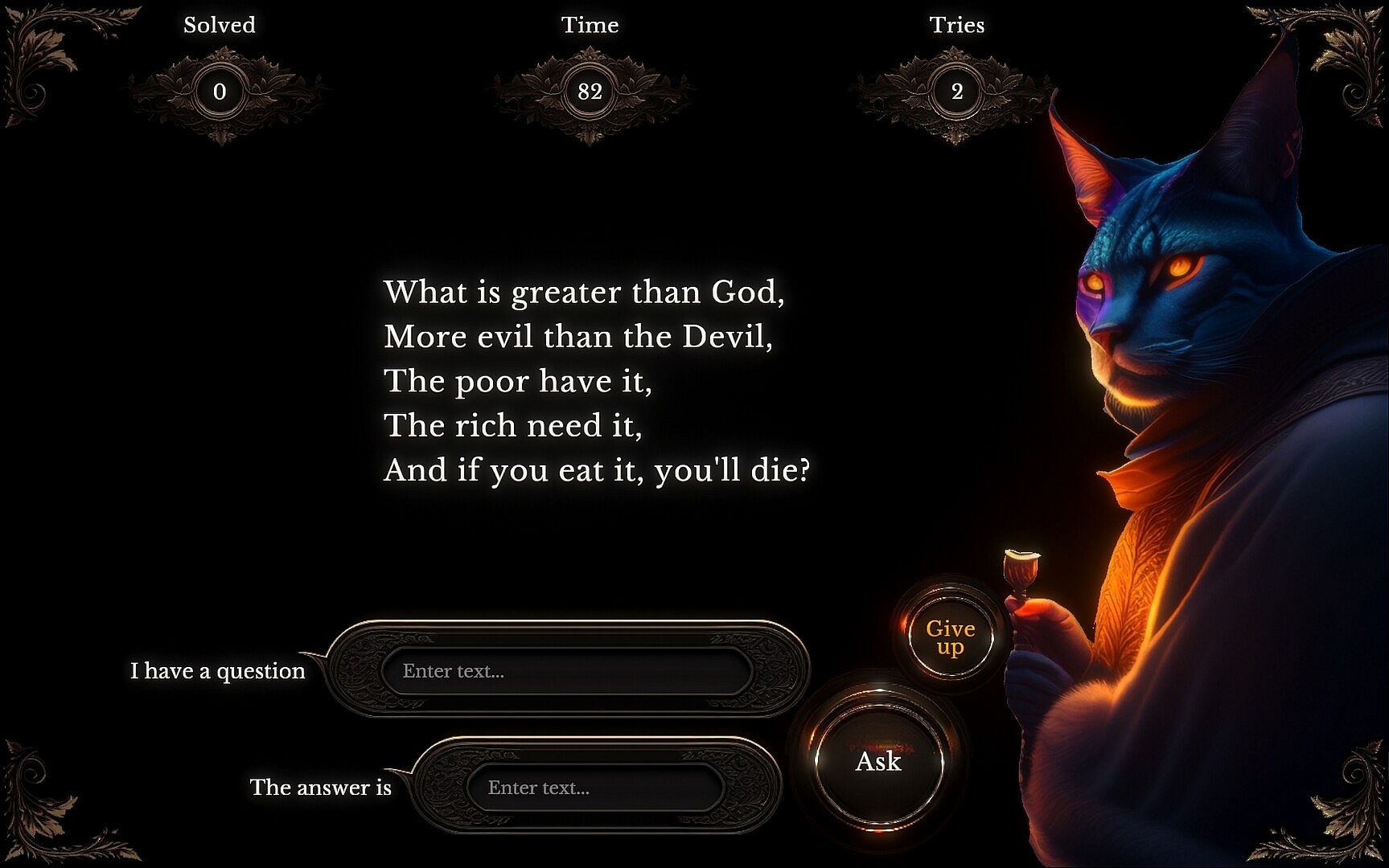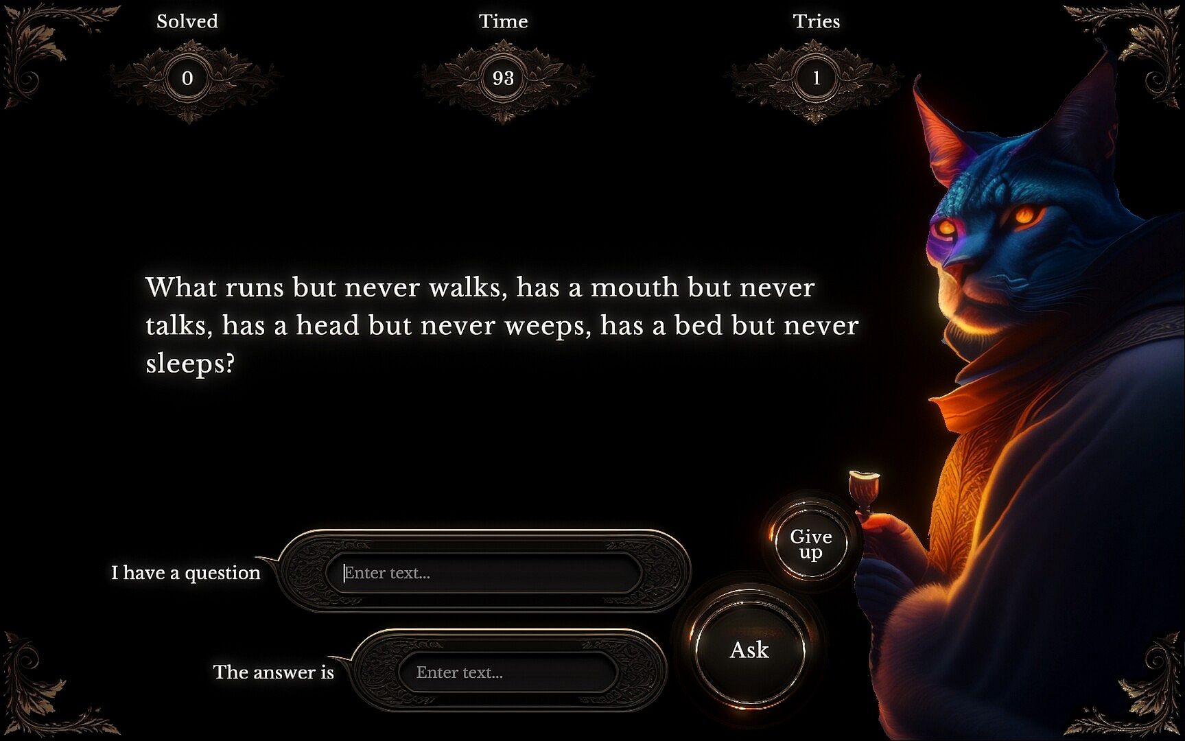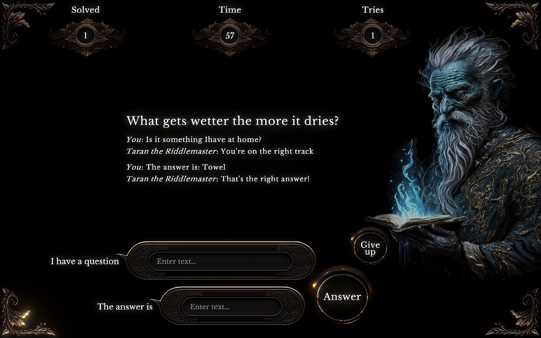 The true magic of "The Riddler" lies in the thrilling experience of interaction with a powerful artificial intelligence (based on ChatGPT) that is specifically tuned for crafting riddles on the fly and speaking about the subjects of those riddles.