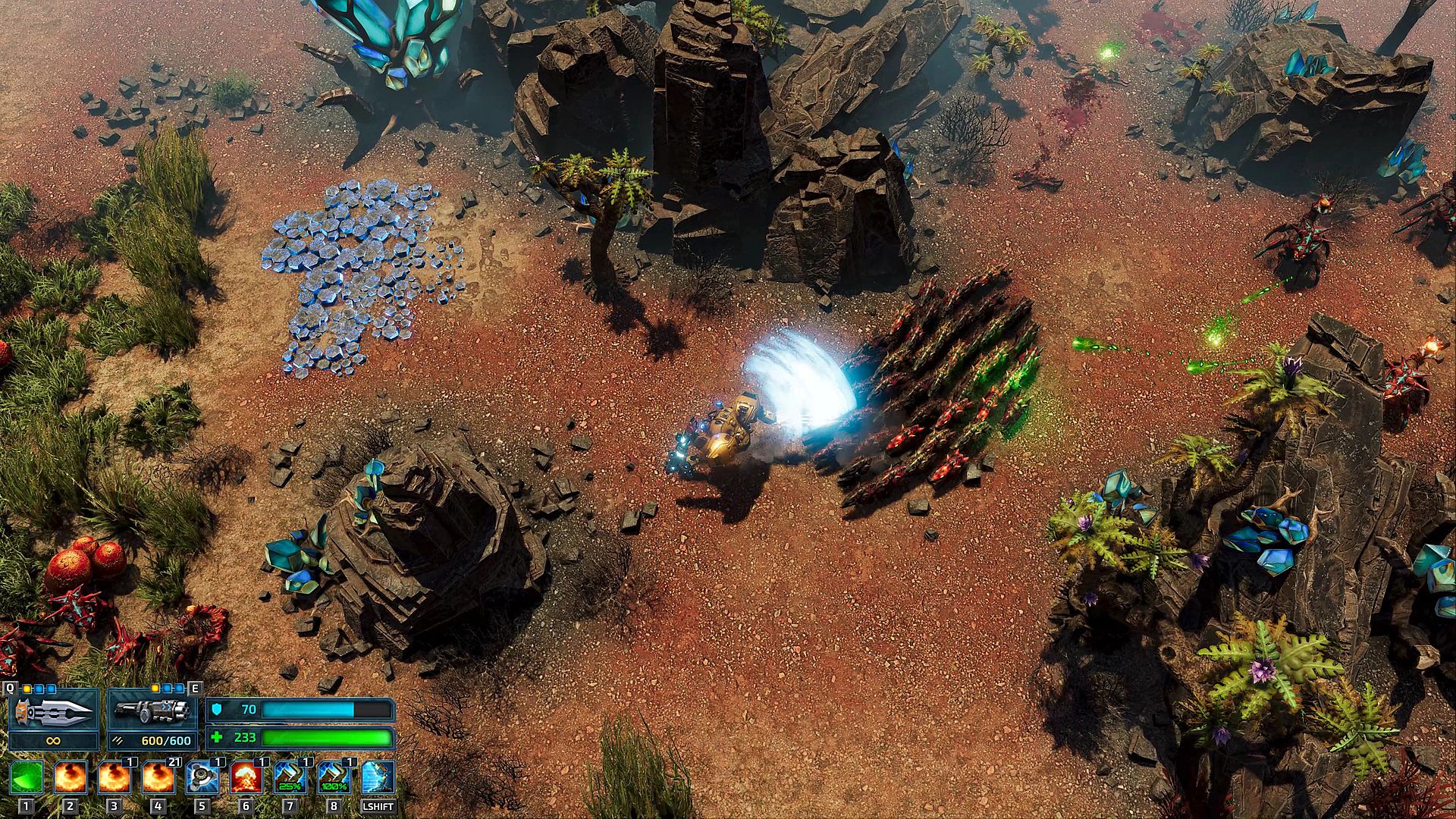 Use the samples that you've gathered to research new technologies that will help you build up your base, improve your defenses, develop new blueprints for your Mecha-suit, or improve existing technologies.